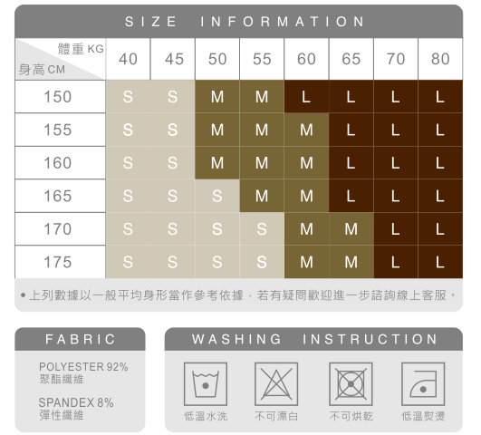 材質:POLYESTER92% + SPANDEX 8%