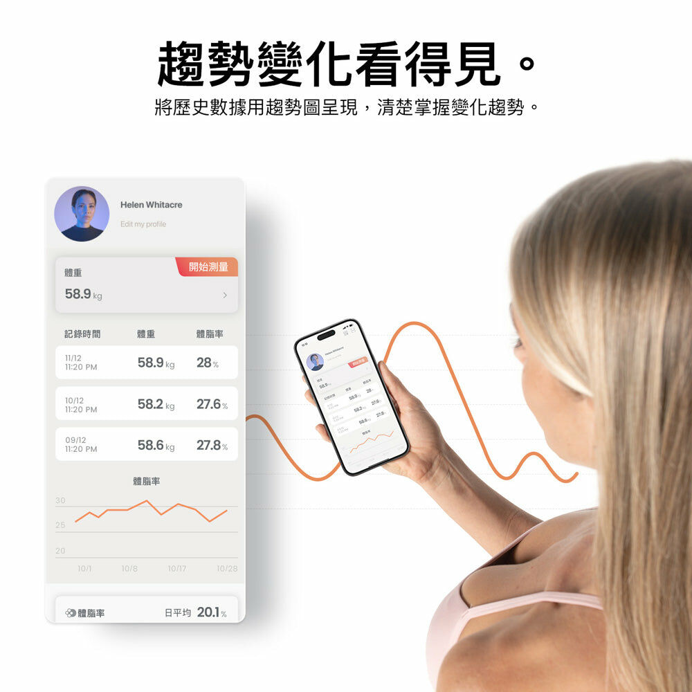 App 完整紀錄測量結果,隨時都能掌握體態變化