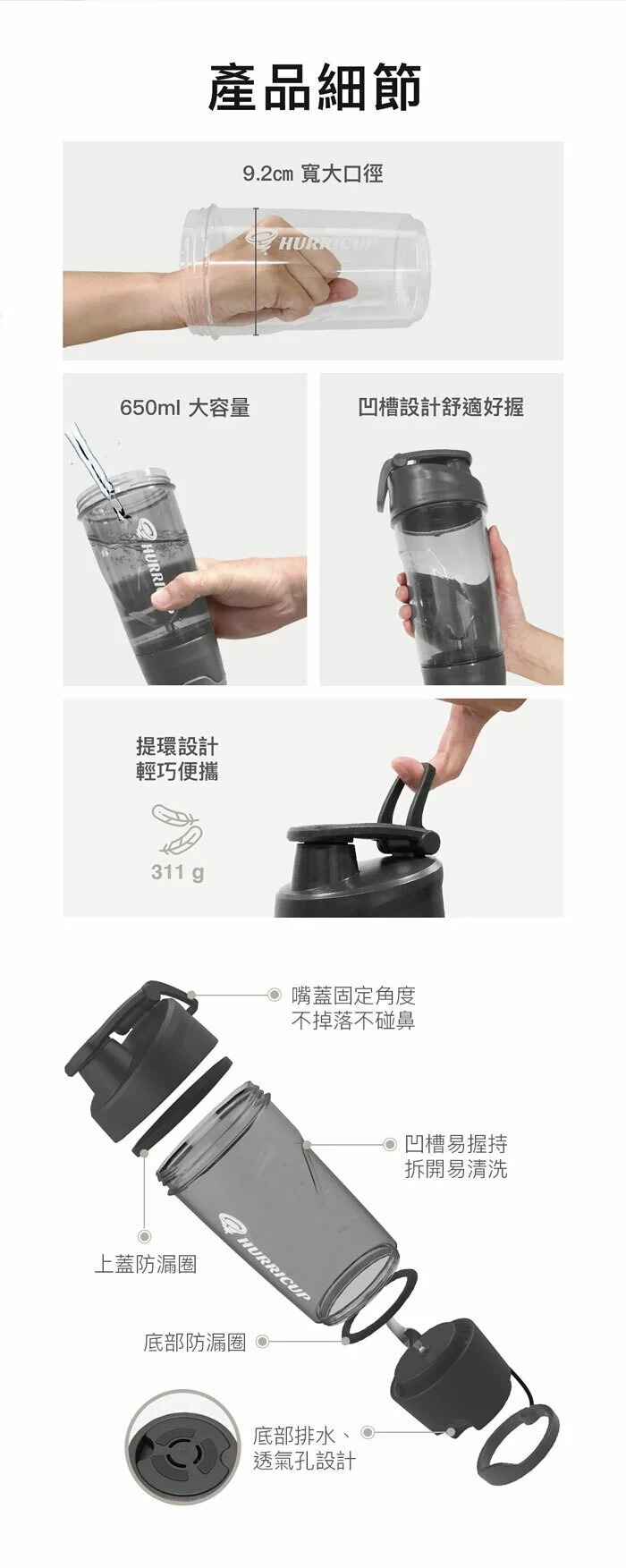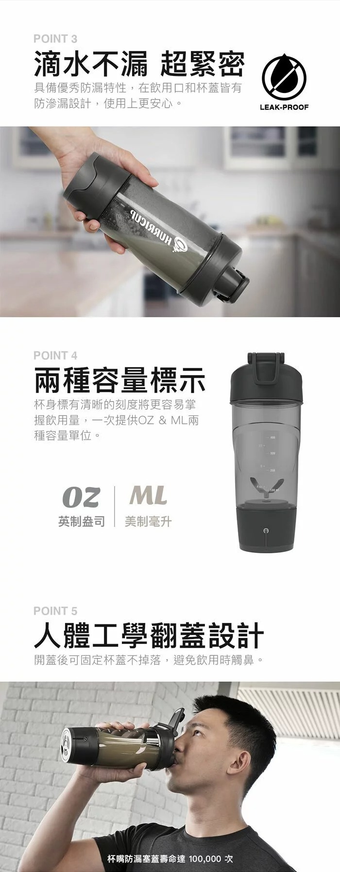 杯身標有清晰的刻度,更容易掌握飲用量,提供OZ(盎司)& ML(毫升)兩種容量單位。