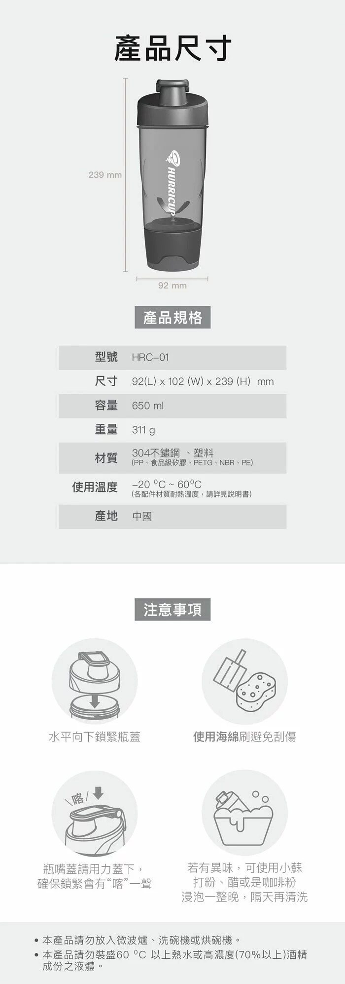 ◆ 本產品請勿盛裝60℃以上熱水或高濃度(70%以上)酒精成分之液體。