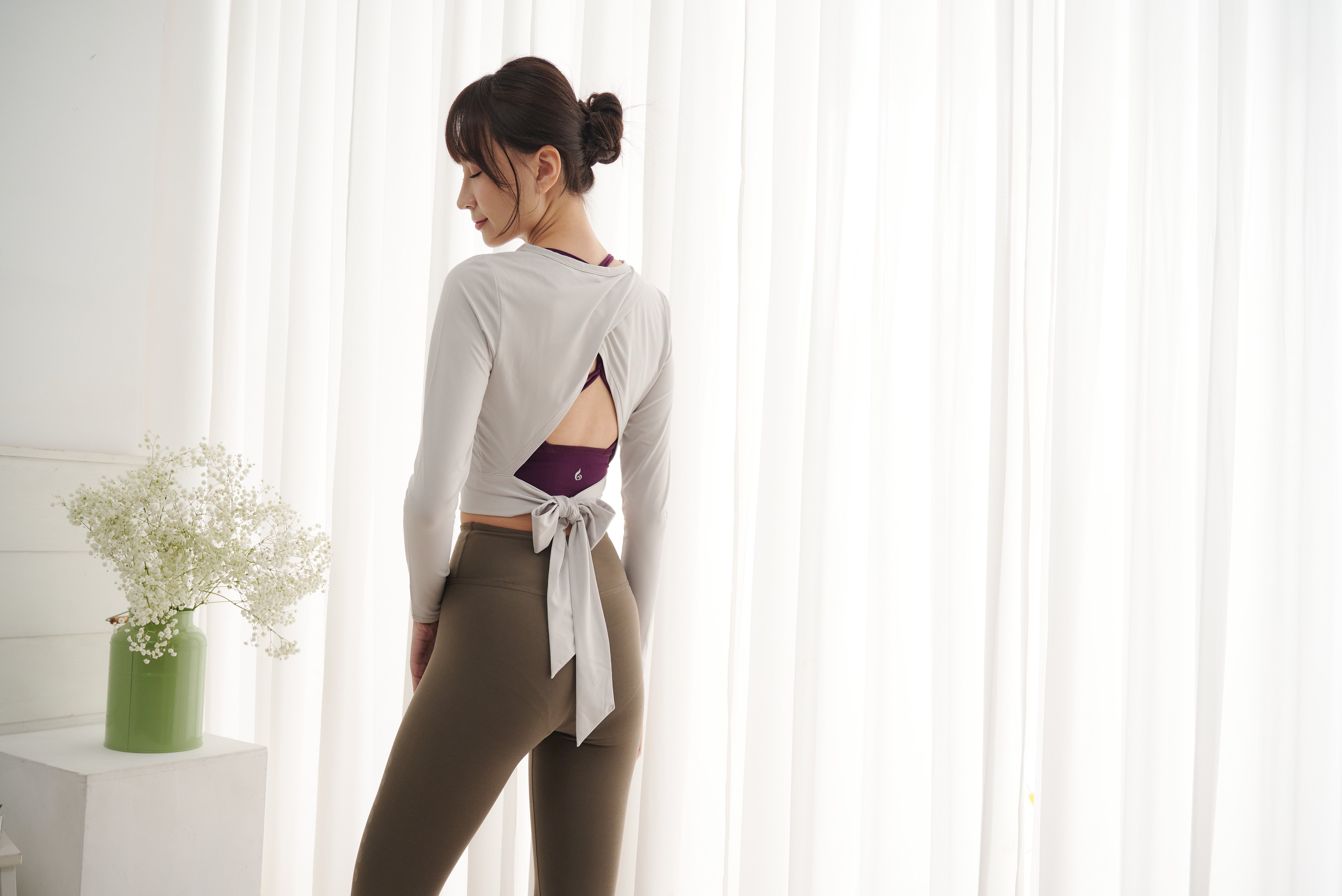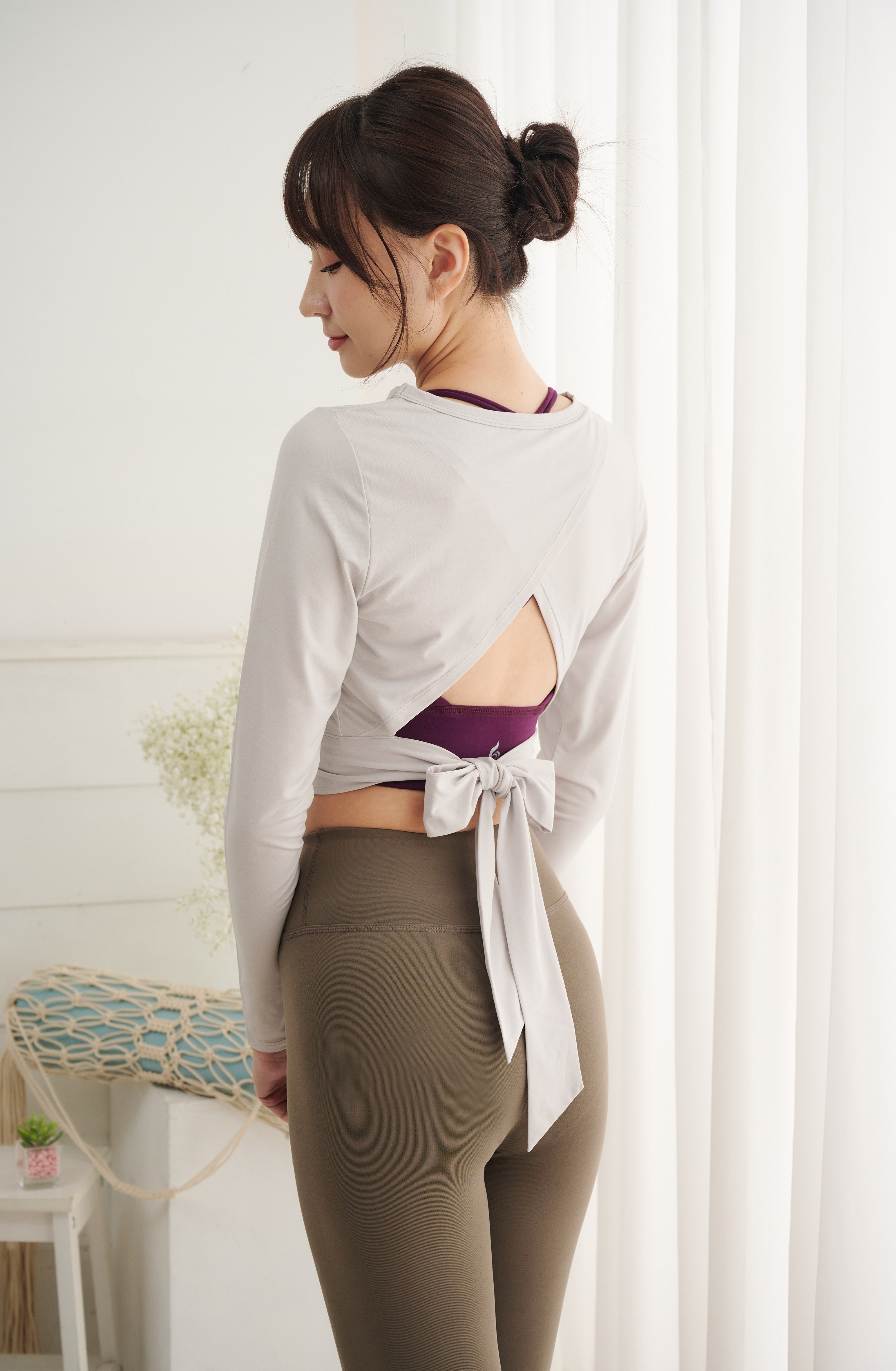 YOGA FLOW Ballet Tied Shirt - 綁帶蝴蝶結罩衫 - 慕泥灰 Grey Light
