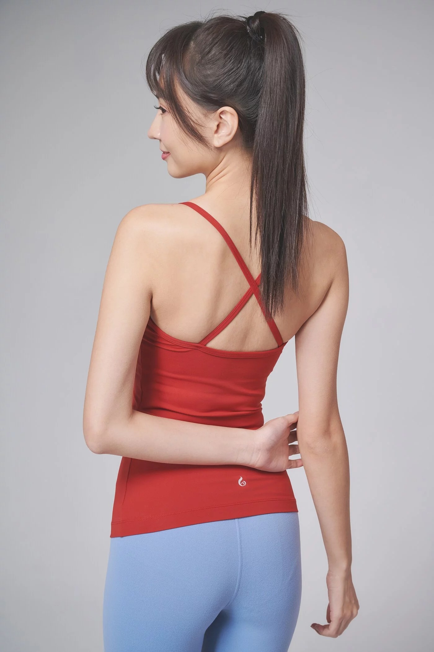 YOGA FLOW Barbie Tank - 細肩帶側邊簍空長版上衣 - 緋紅 Scarlet