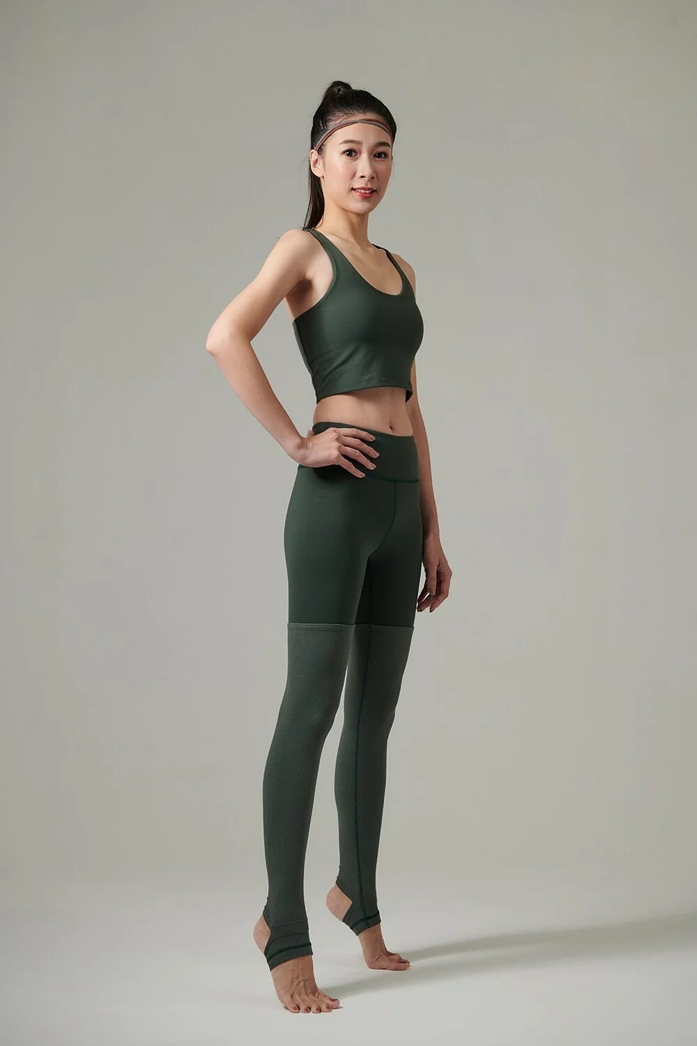 YOGA FLOW Brook Tank 雙材質拼接上衣 - 深草綠 Jungle Green