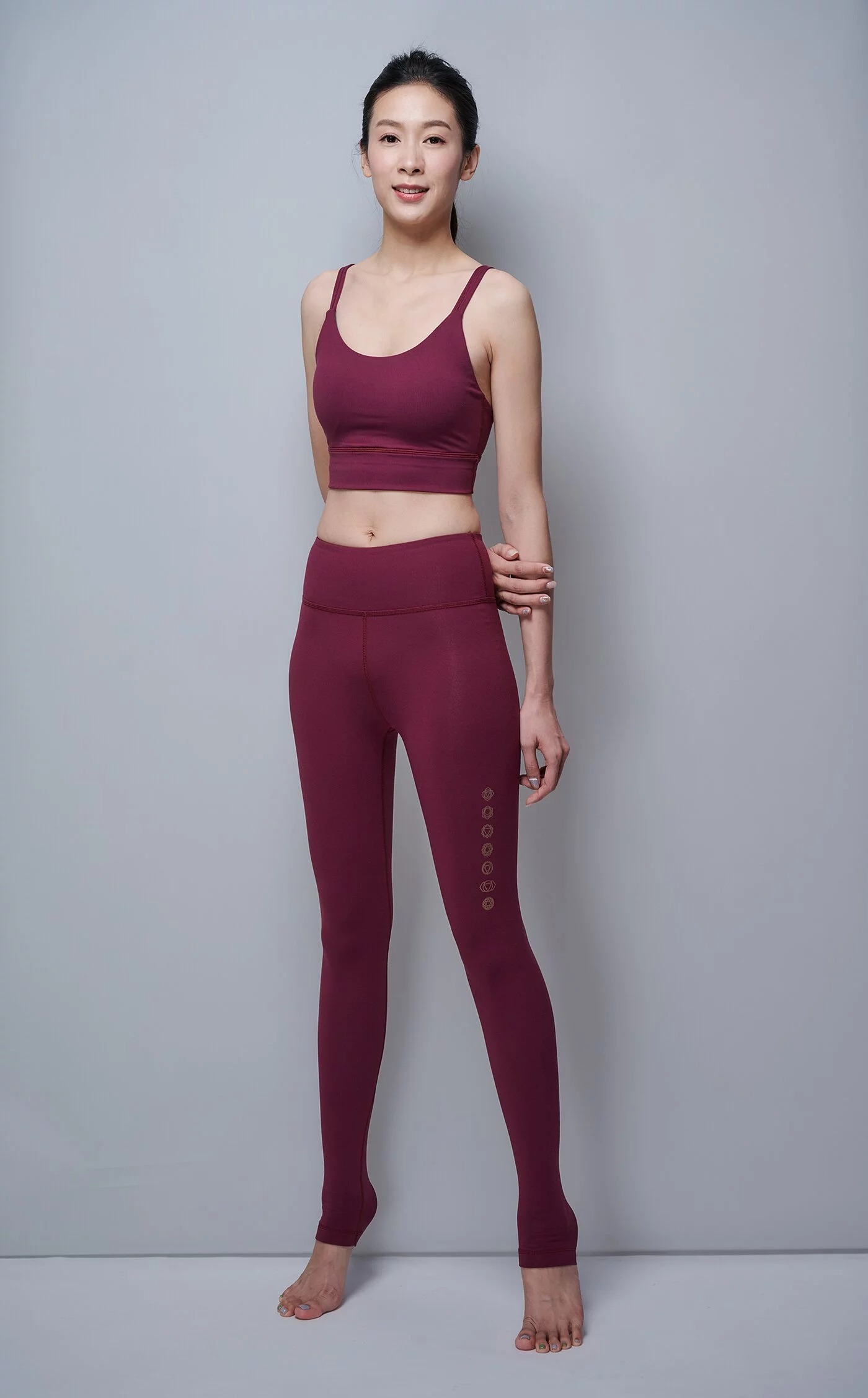 YOGA FLOW Chakra Pants - 脈輪柔彈緊身長褲 - 櫻桃紅 Purplish Red