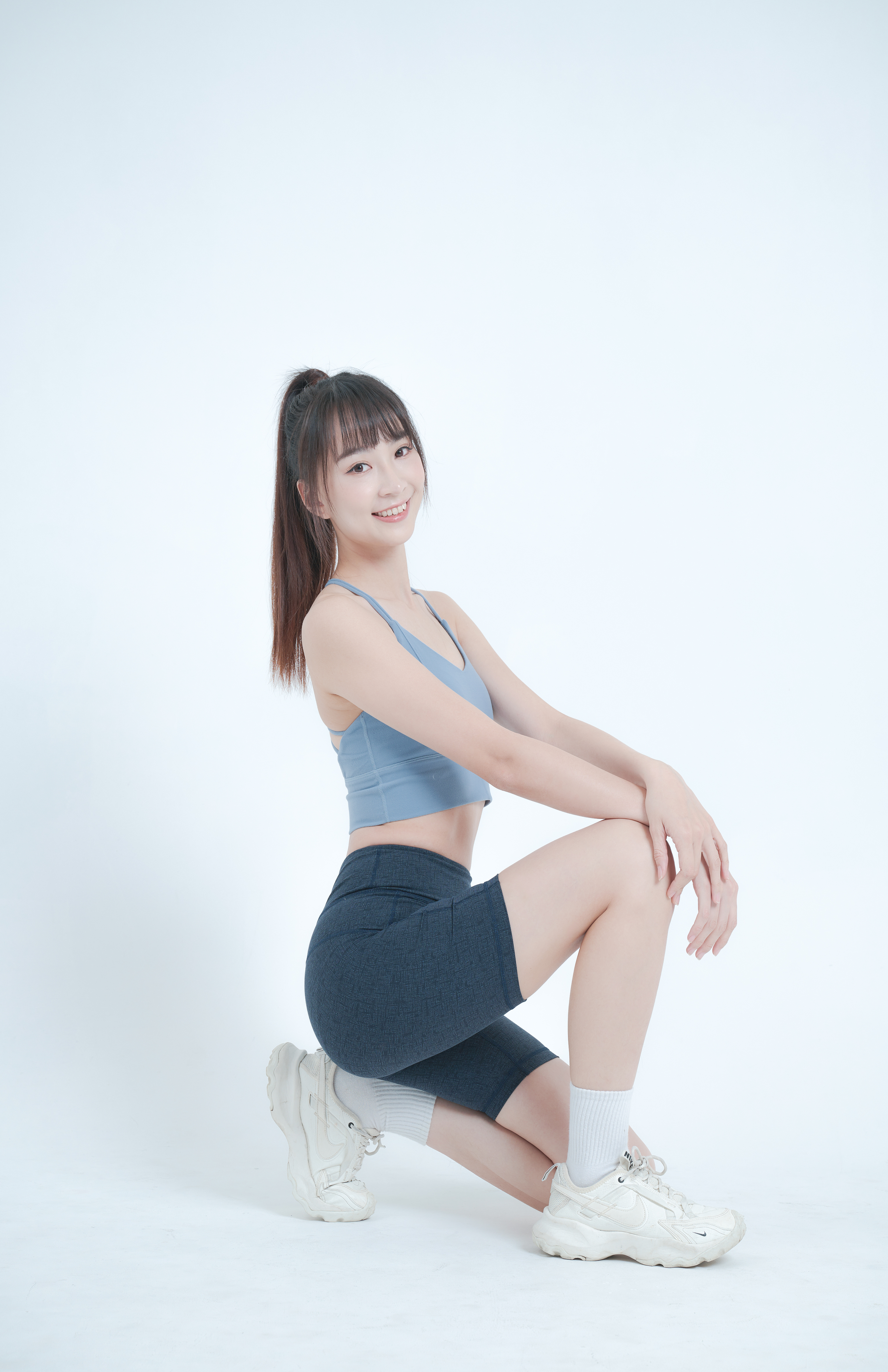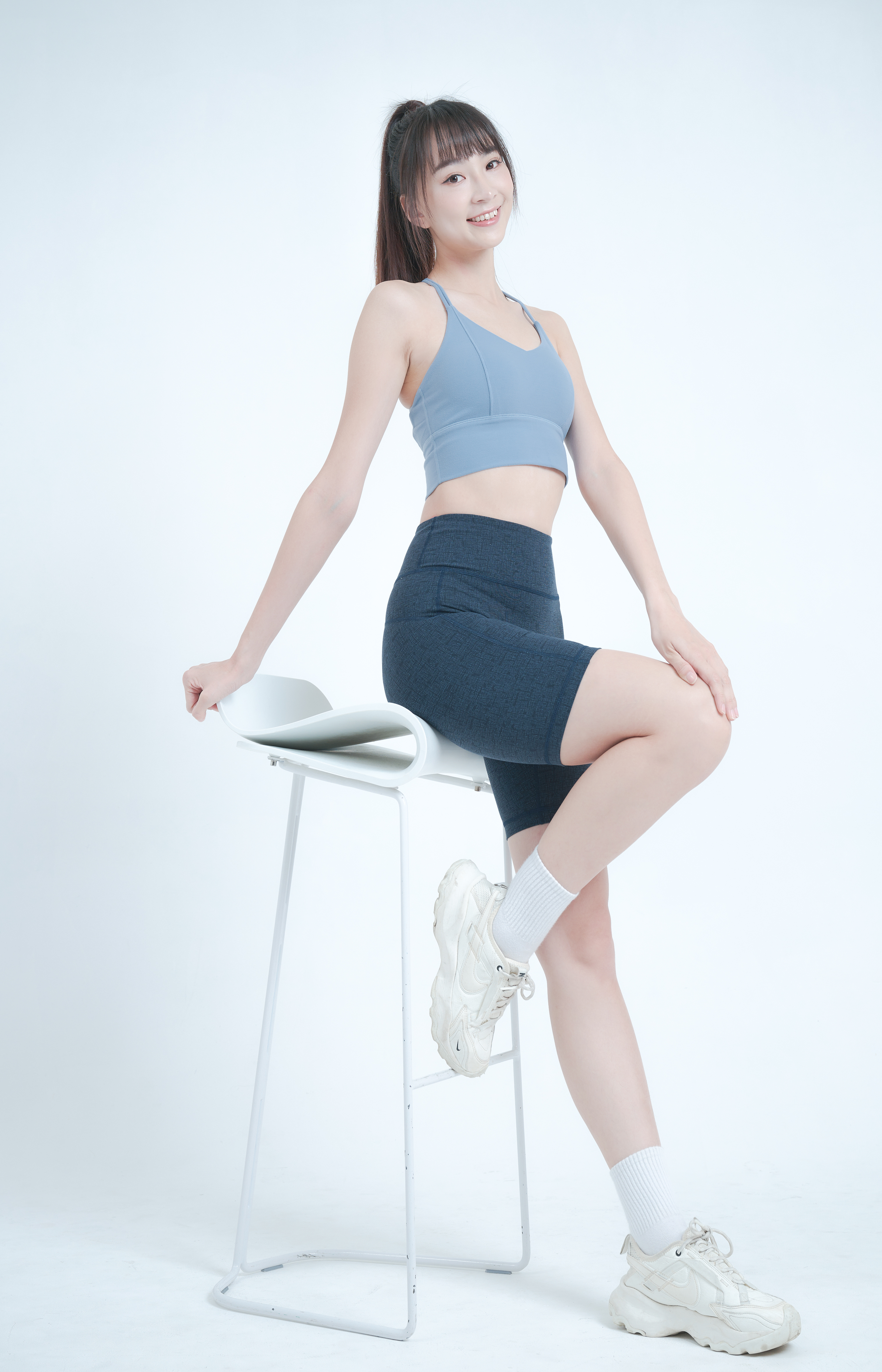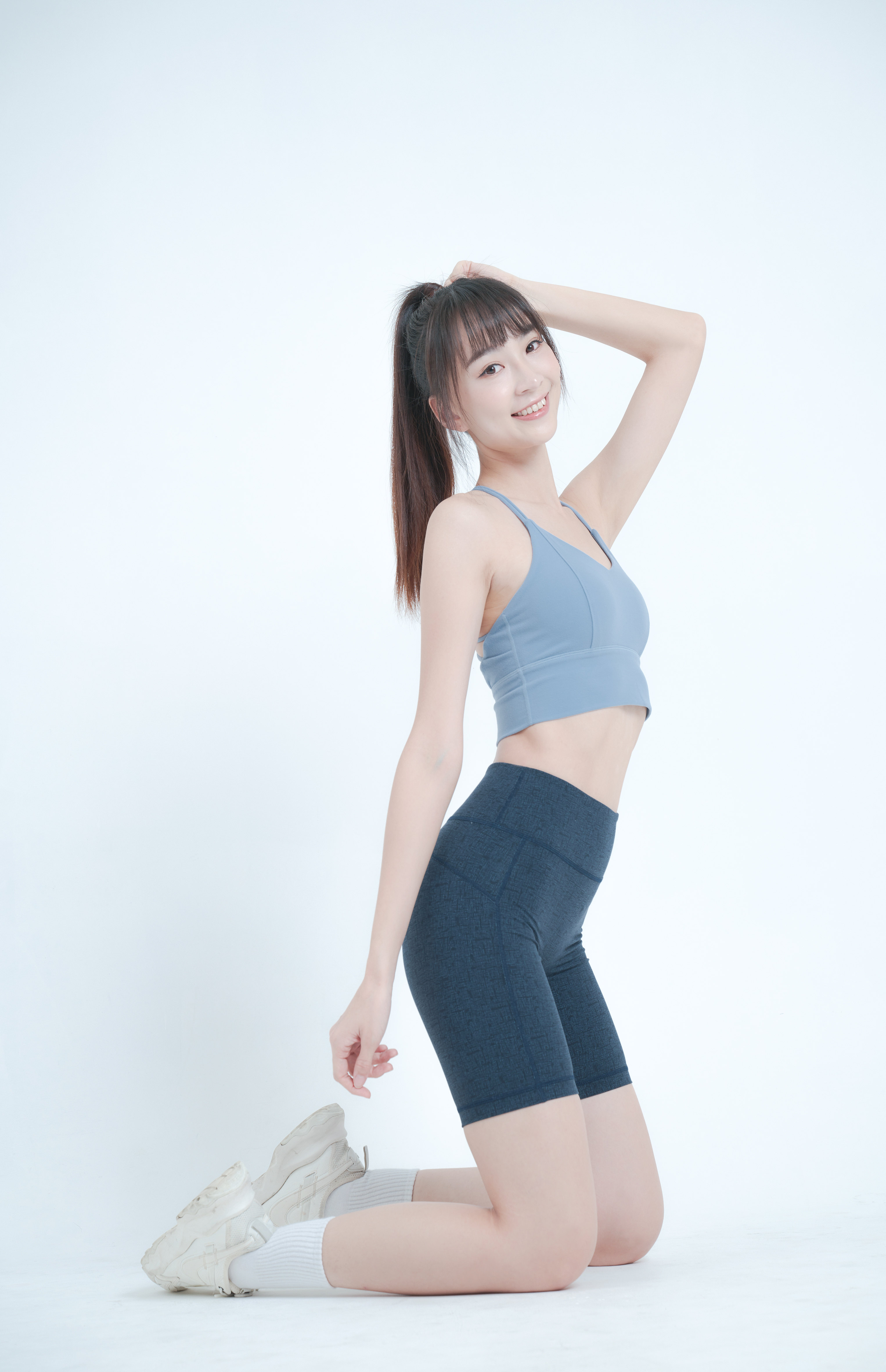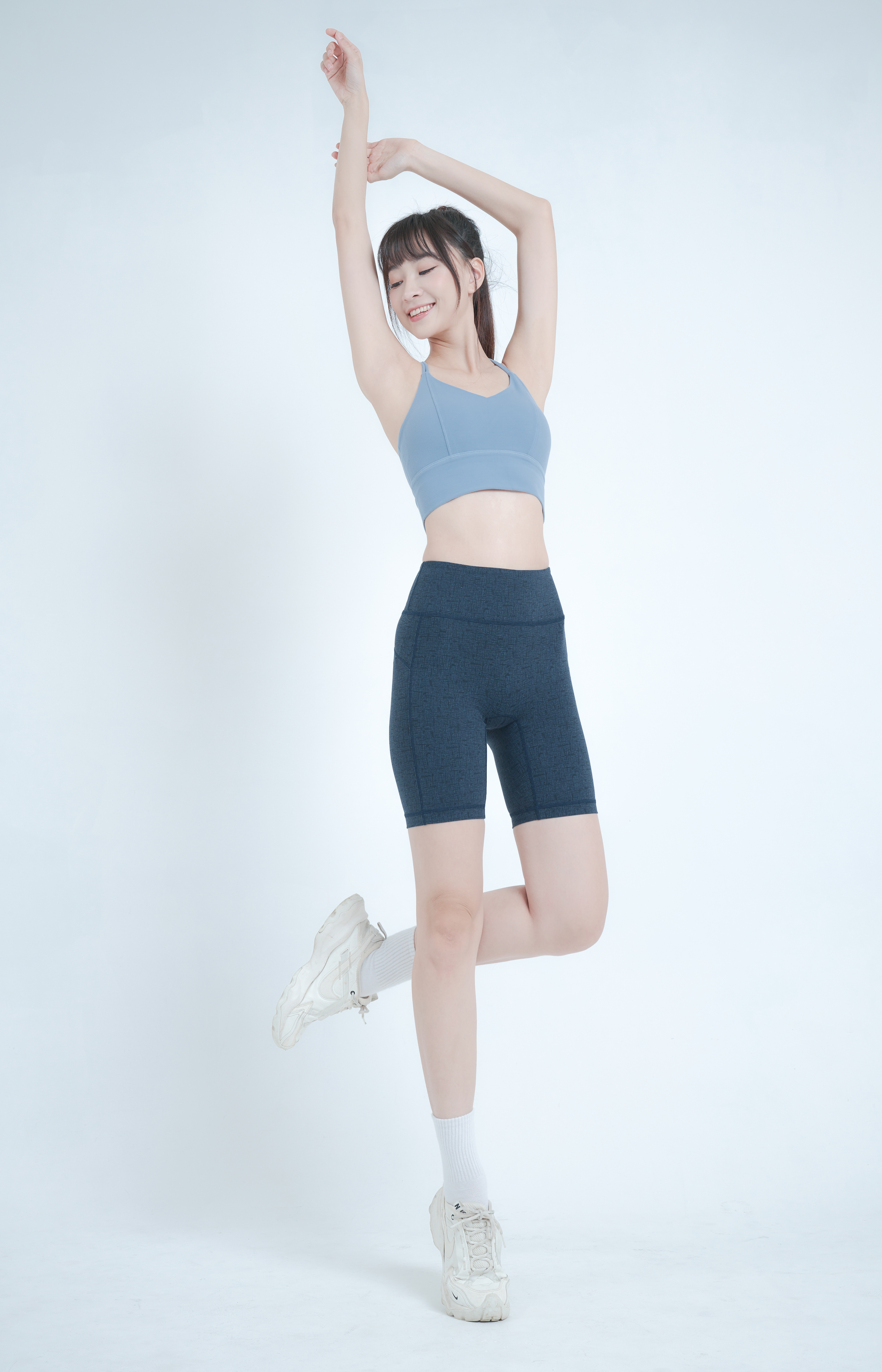 5 . 自由的伸展,高腰包覆提升臀部線條。