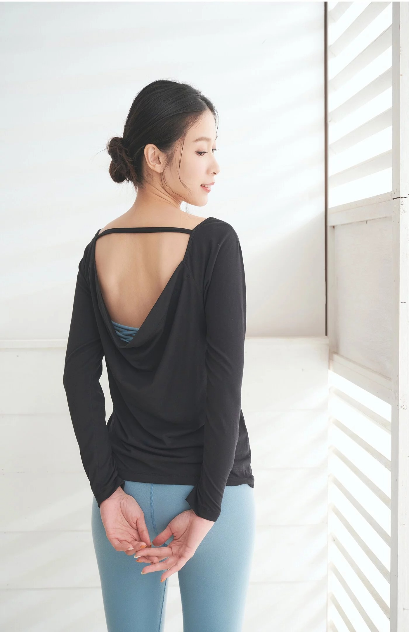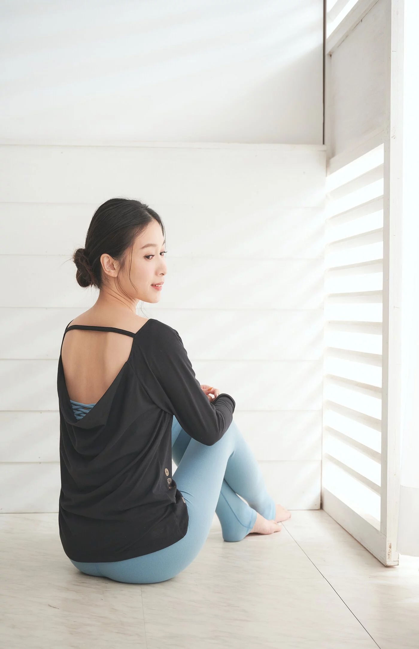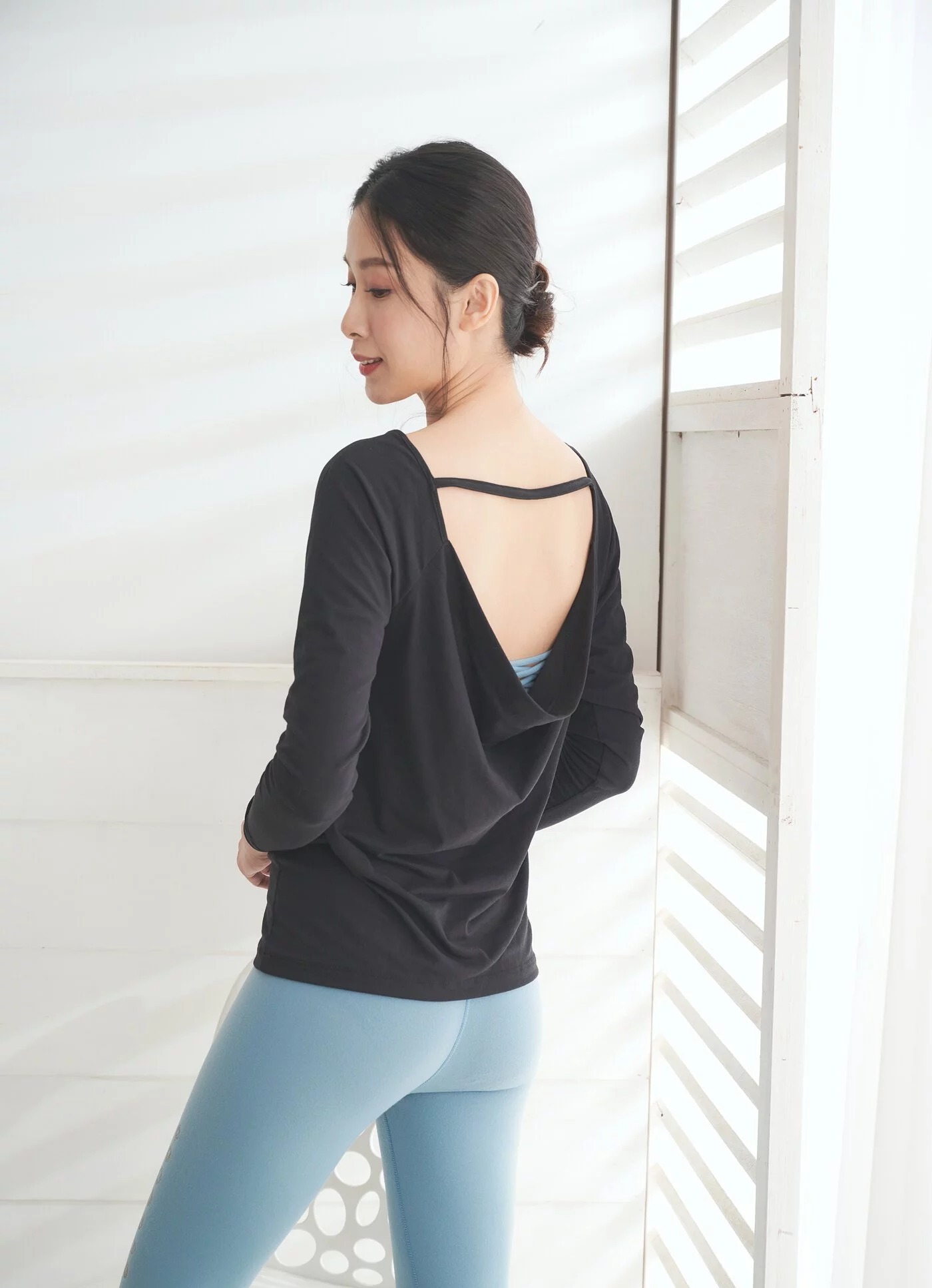 YOGA FLOW Soft(L)Sleeve - 後背優雅垂墜罩衫 - 烏漆黑 Black
