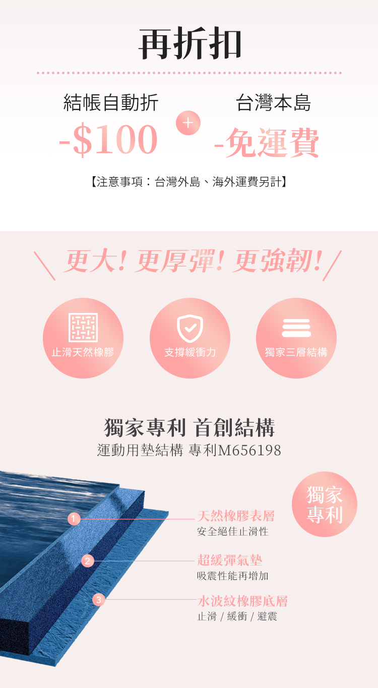 面積更大、厚度更足、彈力更強韌,給你從腳尖到膝蓋的全方位呵護。