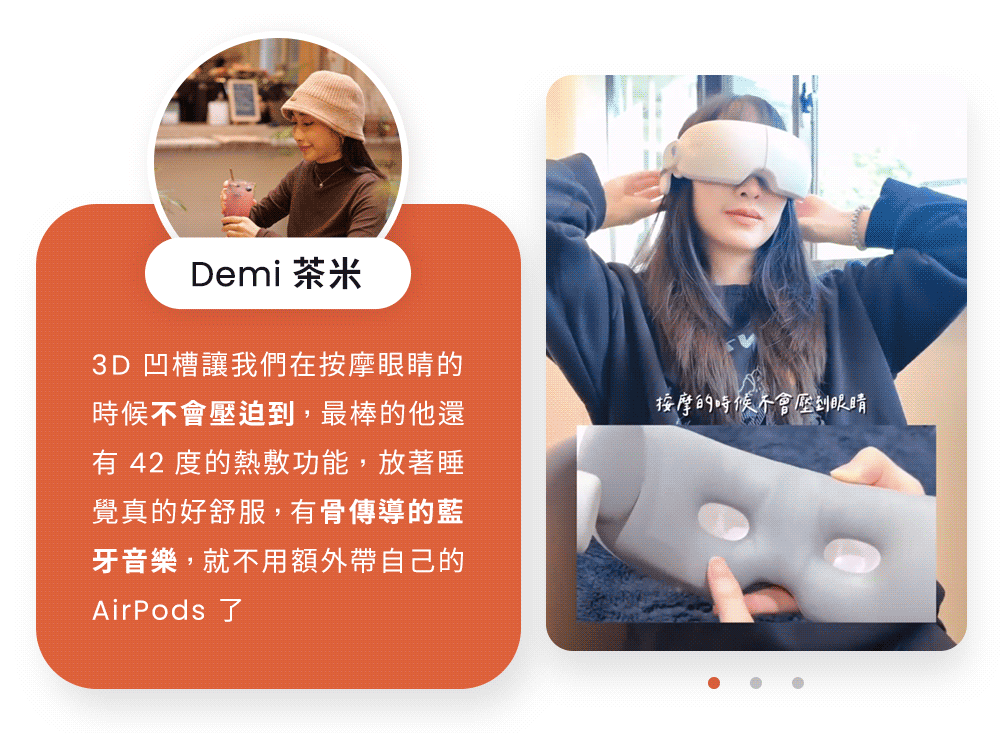 ❷ 兩側獨立氣囊,太陽穴按壓更到位