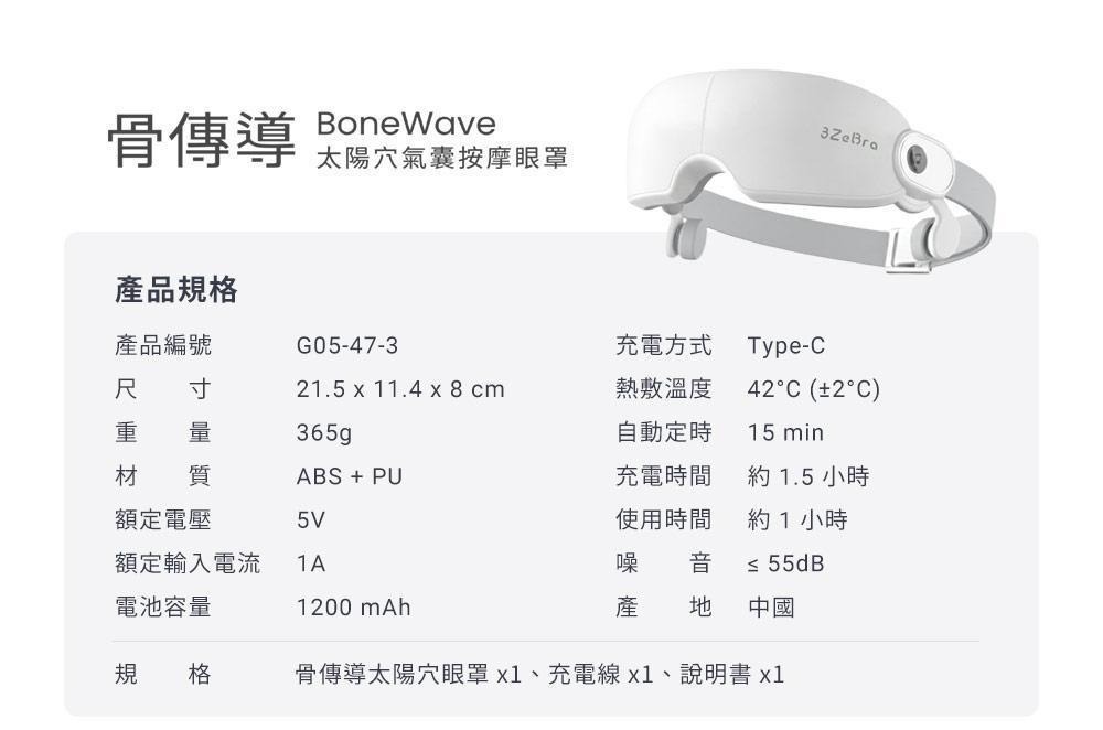 規 格:太陽穴眼罩x1、充電線x1、說明書