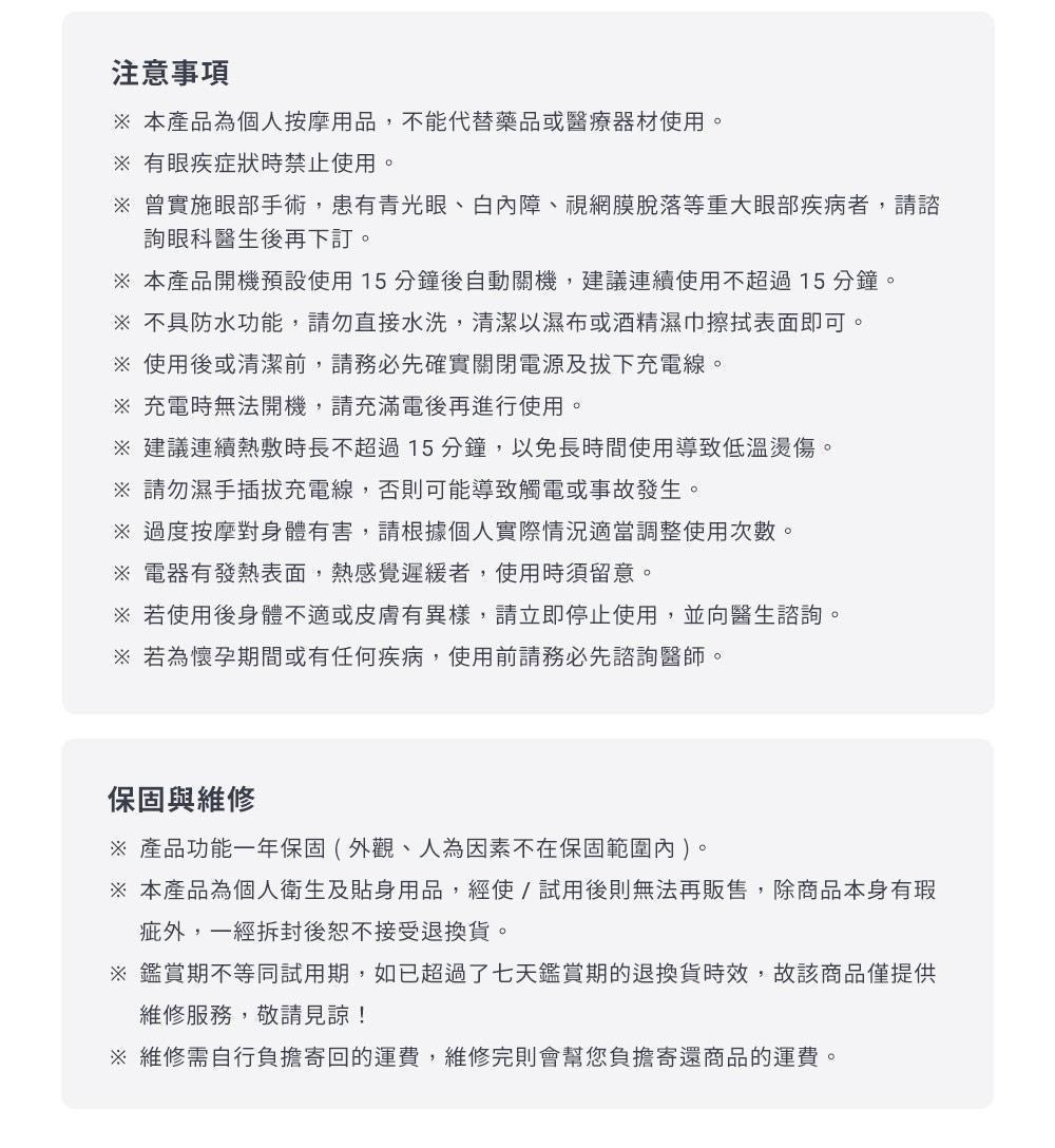 ※ 本產品為個人按摩用品,不能代替藥品或醫療器材使用。