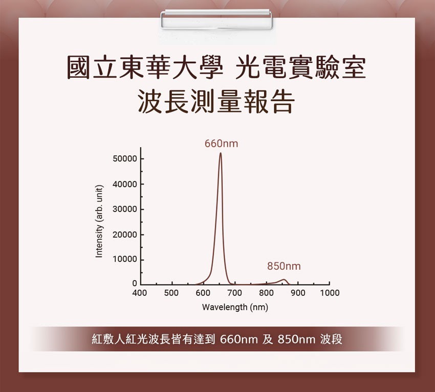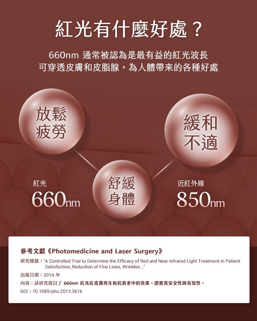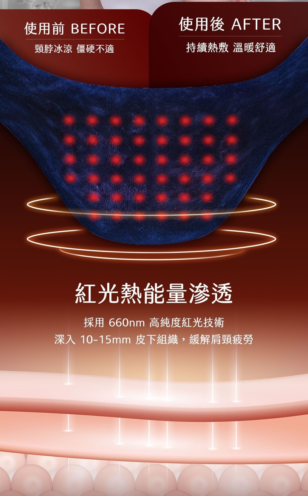 ❶ 44 顆紅光點陣發熱,660nm 波長深層放鬆