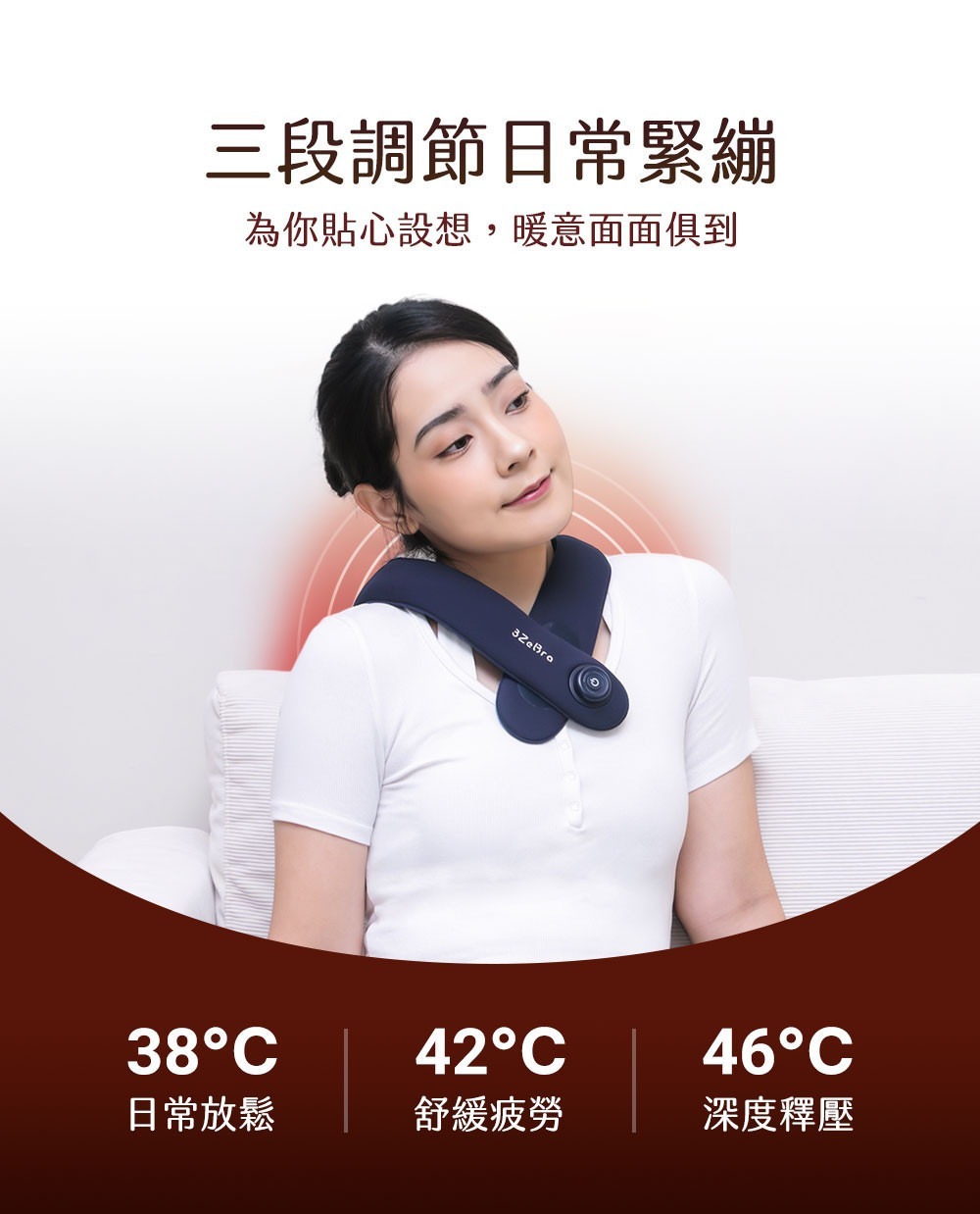 ❷ 三段溫度漸進升溫,最高 46°C 熱敷舒緩