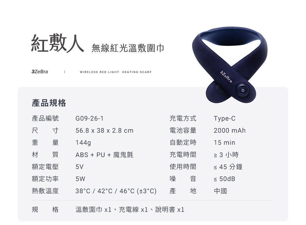 規 格:溫敷圍巾x1、充電線x1、說明書