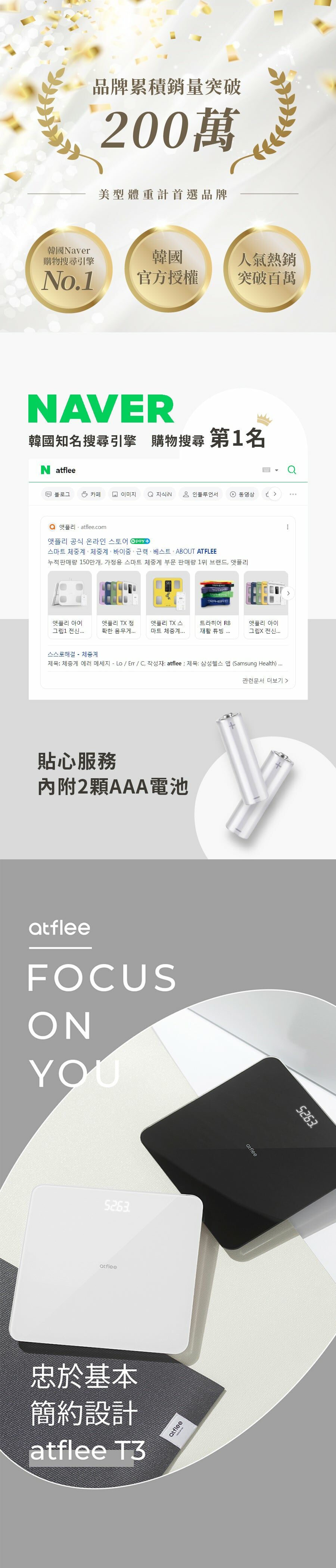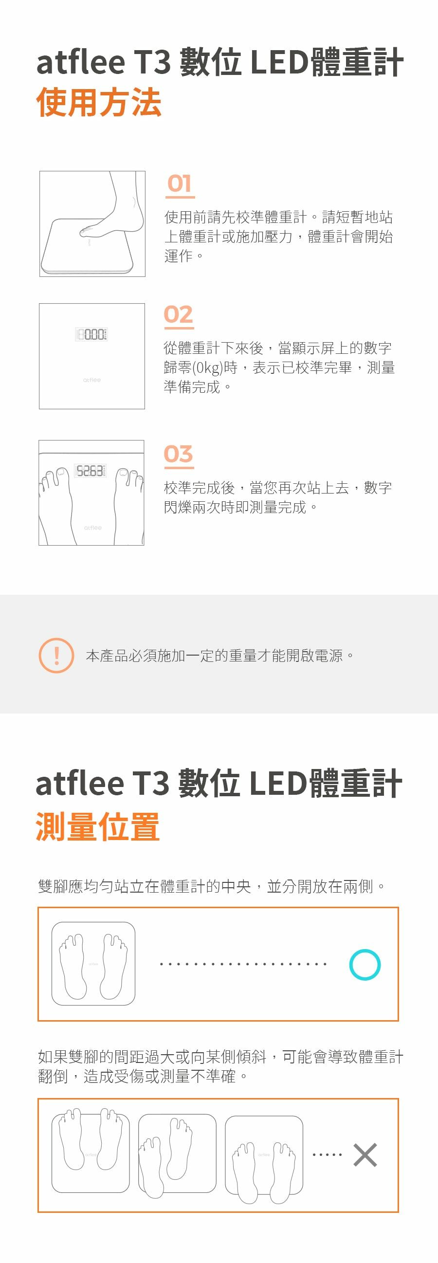 內含:T3數位LED體重計(黑) x1、AAA電池 x2