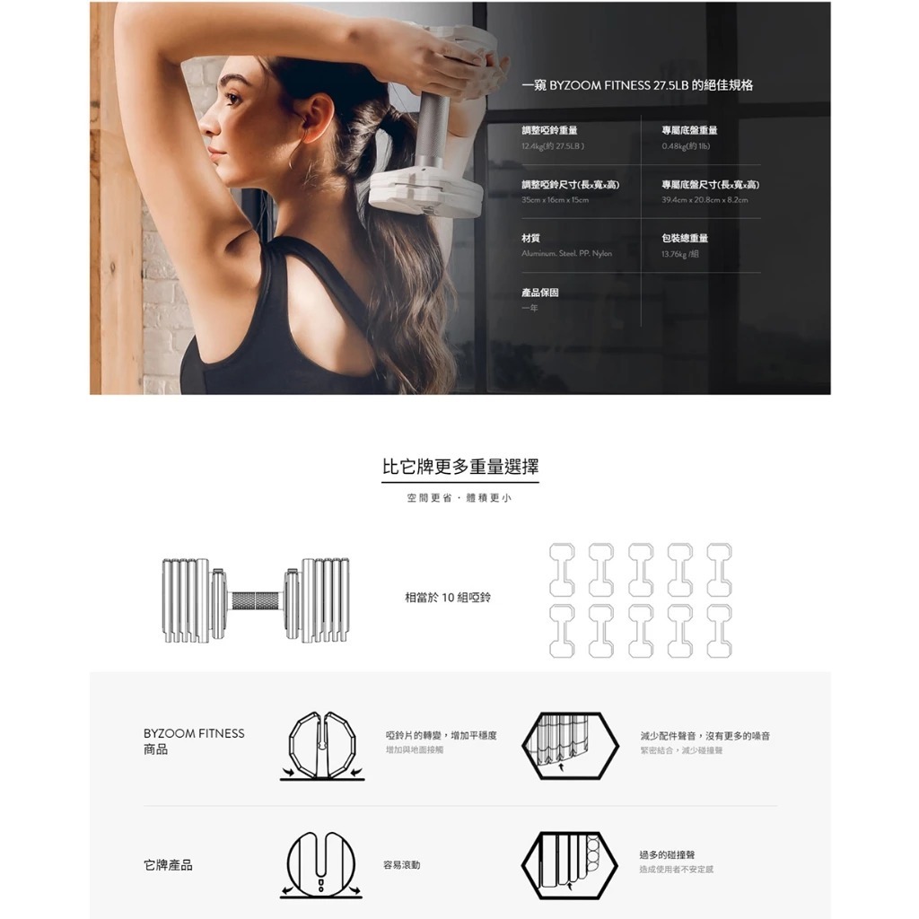 下單再折 BYZOOM Fitness 可調式啞鈴12.5KG(27.5LB) 10段重量秒速調整組 經典黑 Classic Series 現貨免運