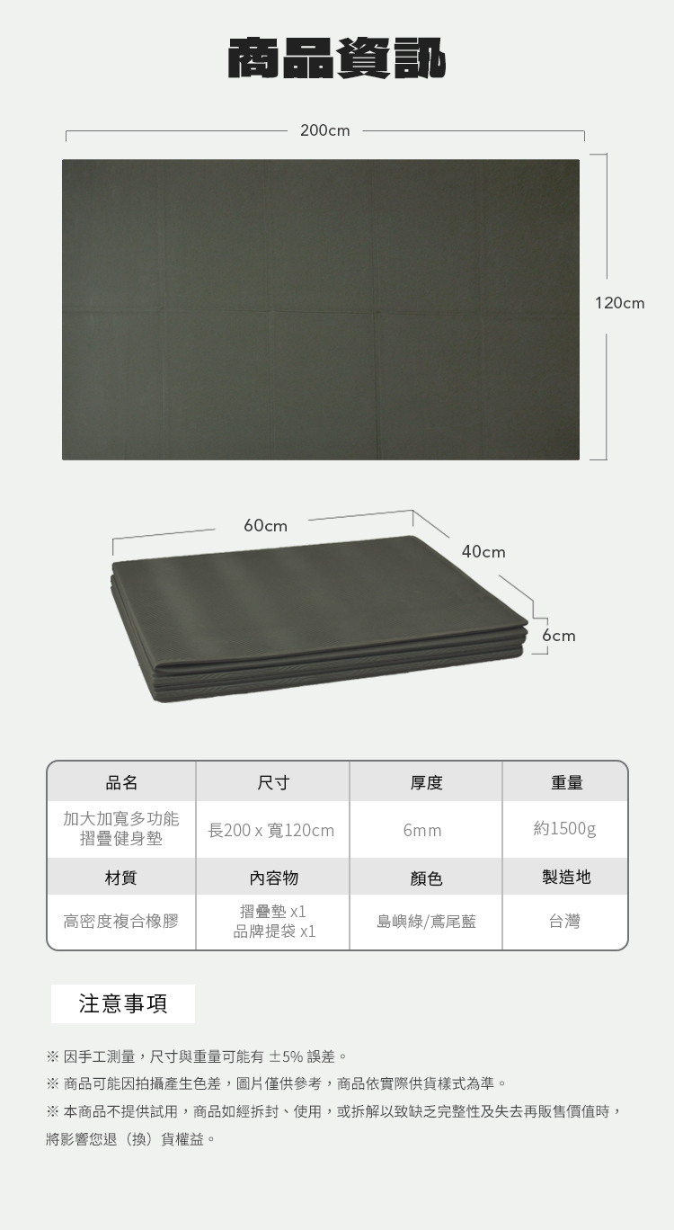 長度200公分 x 寬度120公分 的超大規格,讓運動空間不再受限。