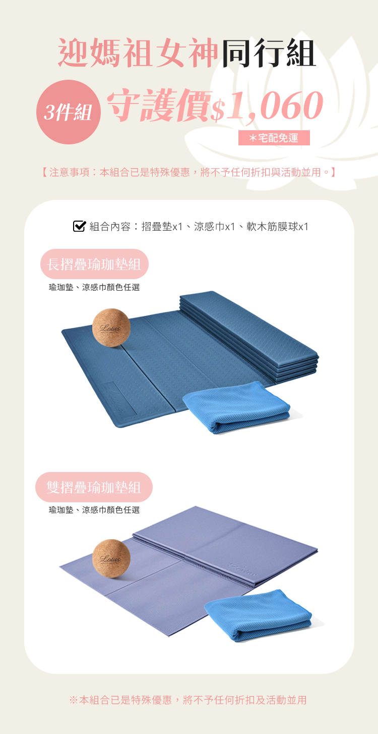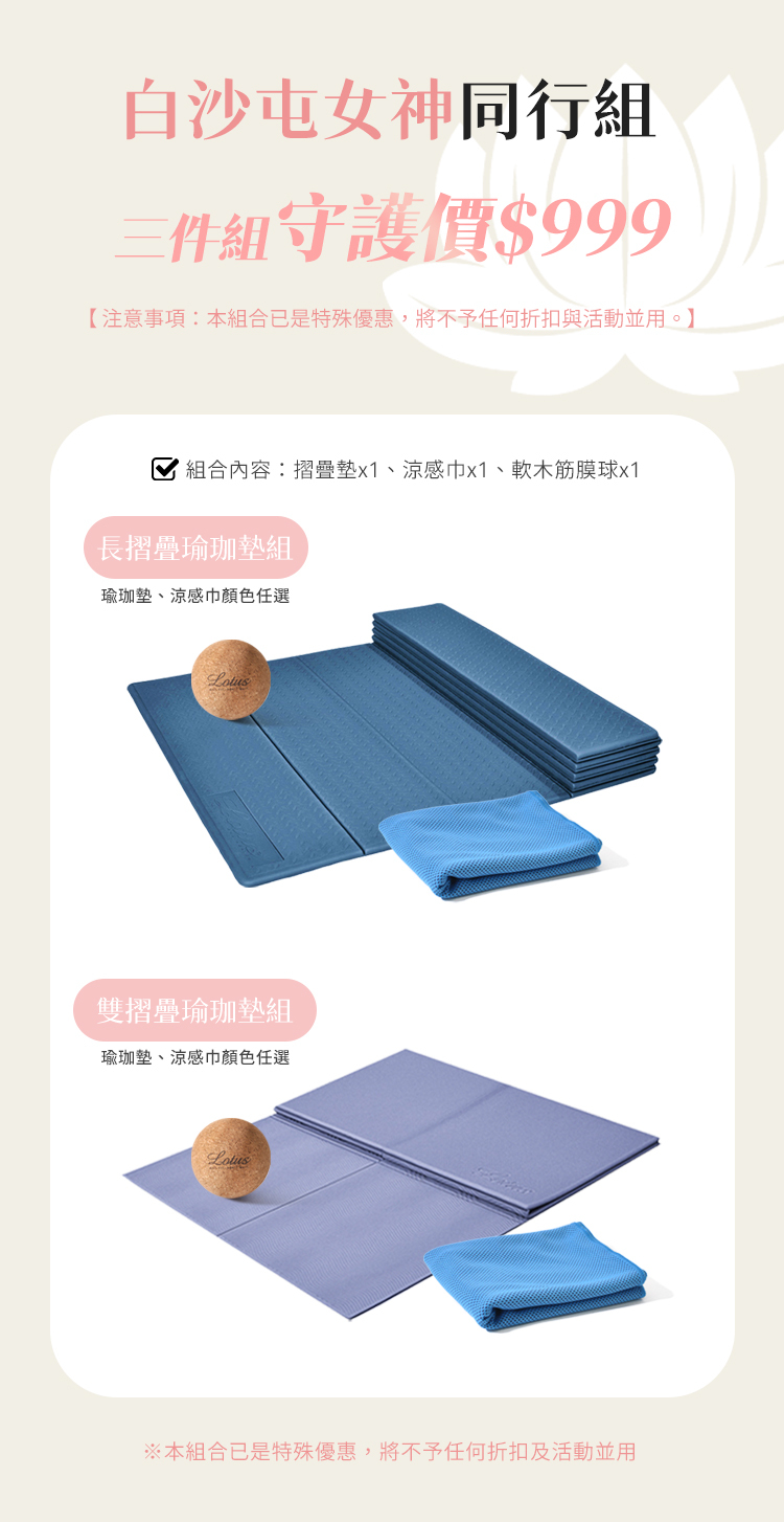 雙折疊瑜珈墊組⭐台灣製雙摺疊瑜珈墊5mm+涼感運動毛巾+軟木按摩筋膜球