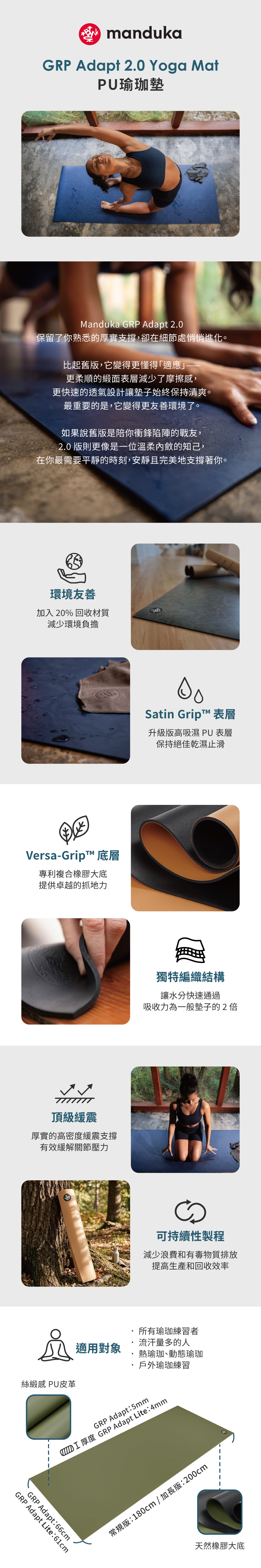 Manduka GRP® Adapt Lite 2.0 Yoga Mat PU瑜珈墊 4mm / 180x61cm - La Rana