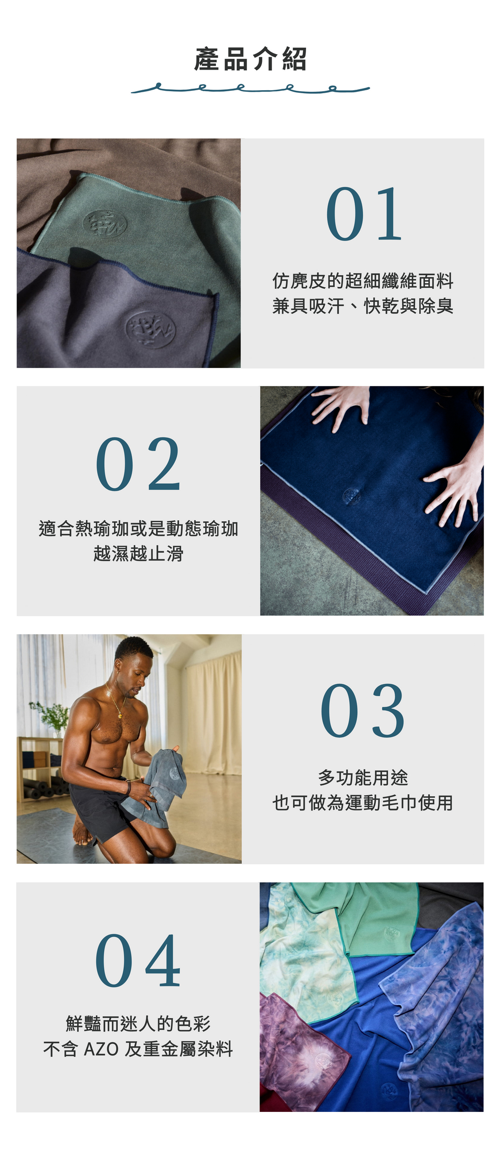 • 極其耐用且極快的乾燥速度,帶來防滑的瑜珈體驗。