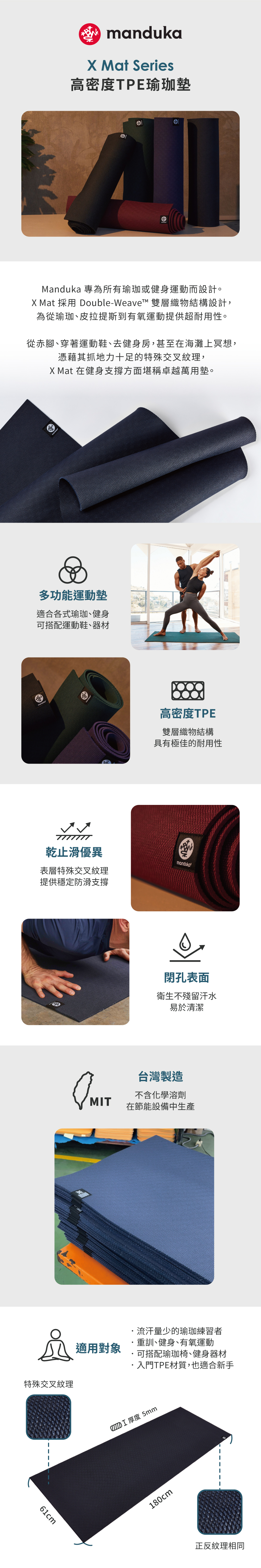 ※ 高密度TPE材質表面紋理會比較明顯,建議可以搭配瑜珈鋪巾或支撐墊使用。