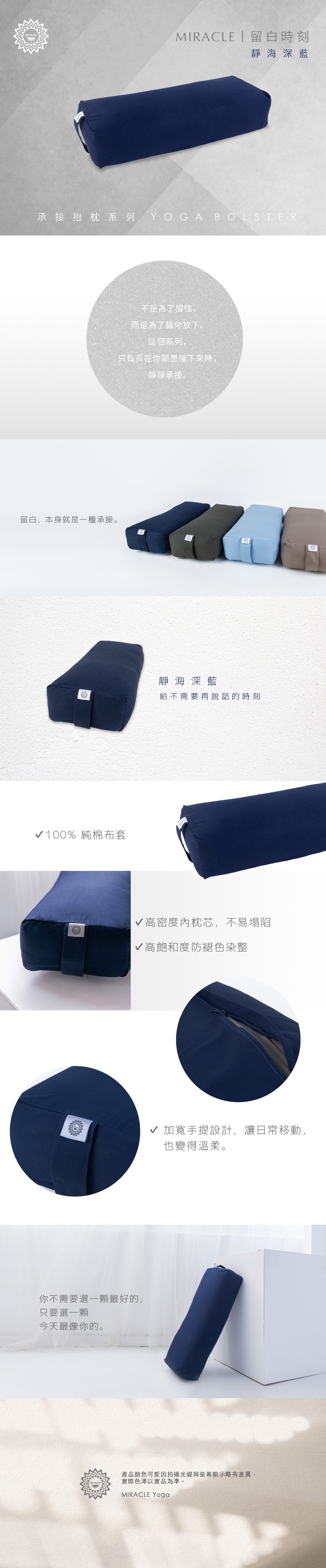 • 瑜珈外枕套,經洗滌後將會1%~3% 的縮率,屬自然現象。