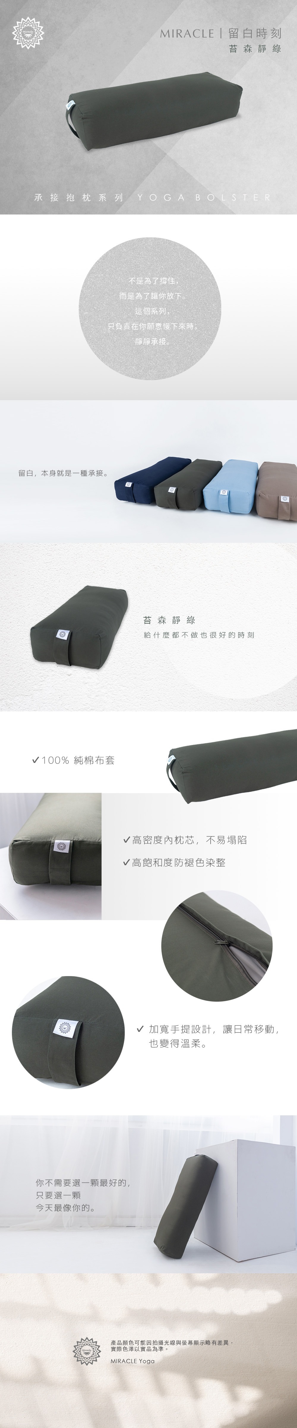 • 瑜珈外枕套,經洗滌後將會1%~3% 的縮率,屬自然現象。