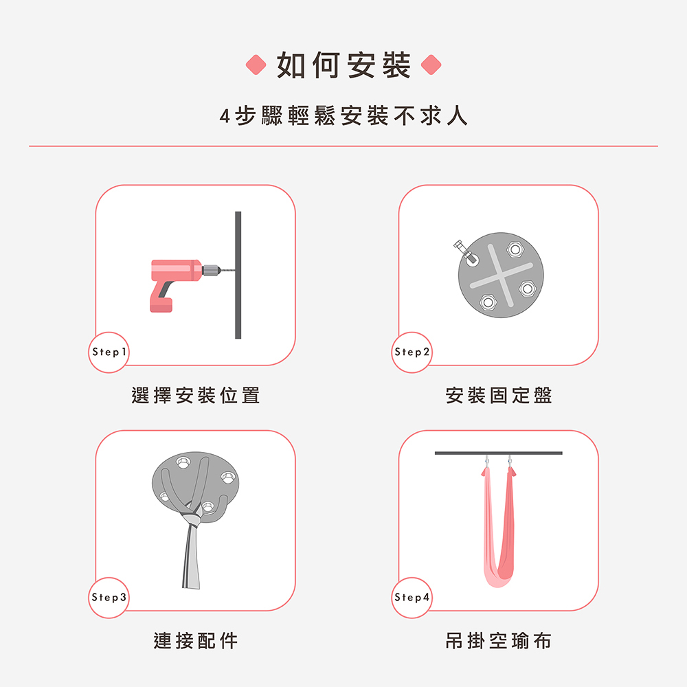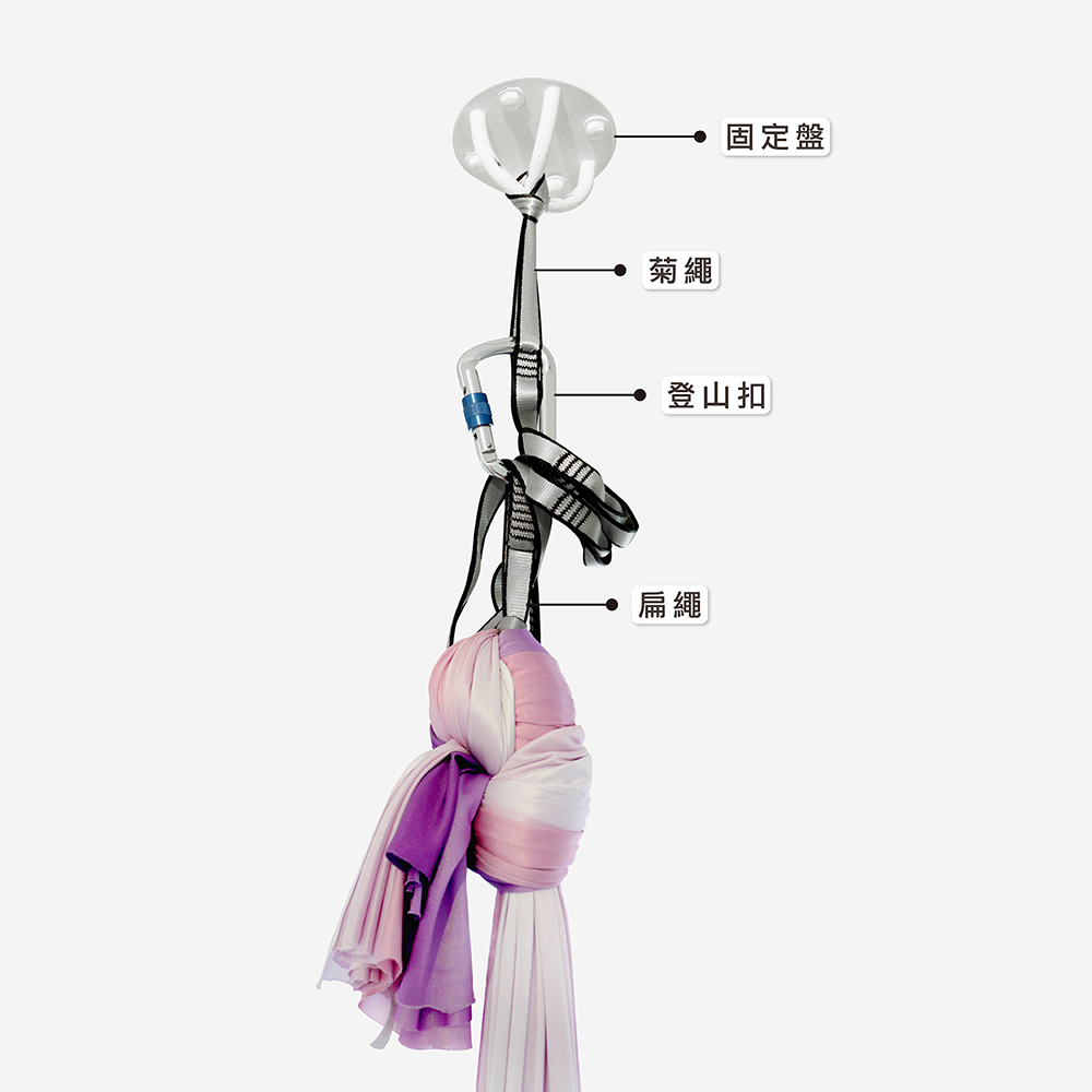 Mukasa 空中瑜珈設備結合安全、耐用與舒適,包含空中瑜珈掛布、固定配件等,適合入門與進階練習者。無論伸展、翻轉或挑戰高難度動作,都能提供穩固支持與安心體驗,是專業與實用兼備的空中瑜珈首選。