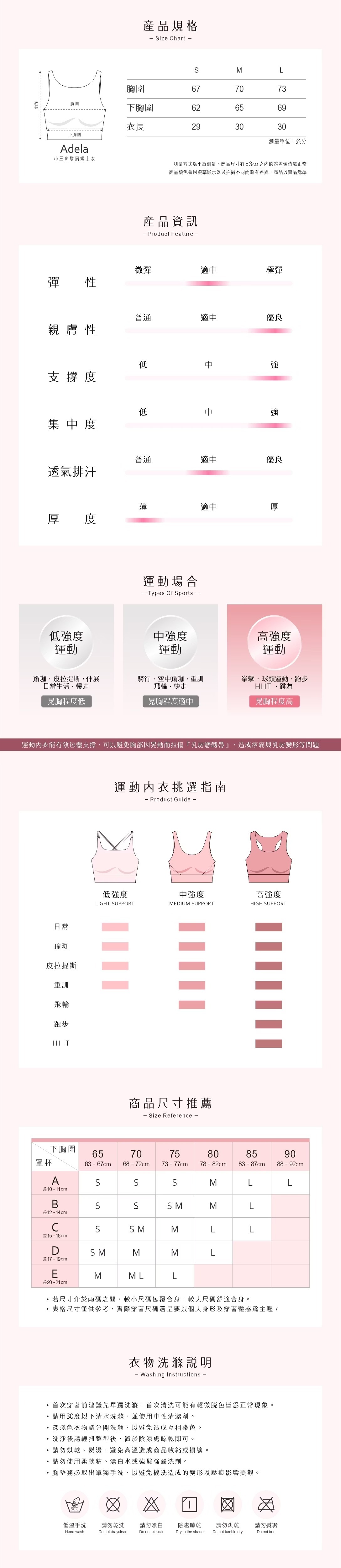結合版型設計,更具支撐力,能完整包覆胸型,減少運動時的晃動,提供安全感。