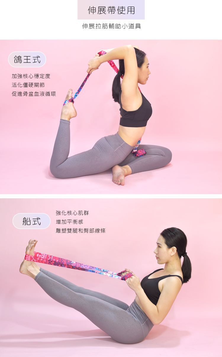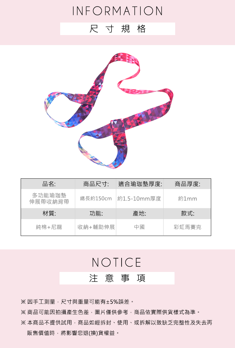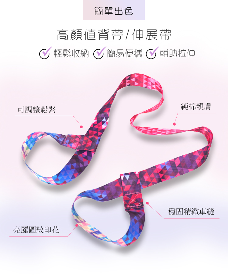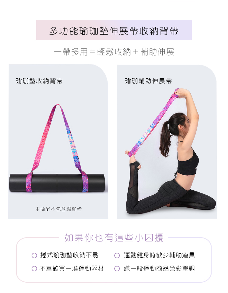 ● 可收納瑜珈墊 也能當拉筋伸展帶