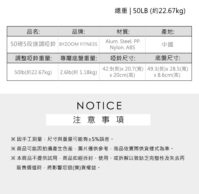 1組=調整啞鈴x1支、專屬底盤x1個。