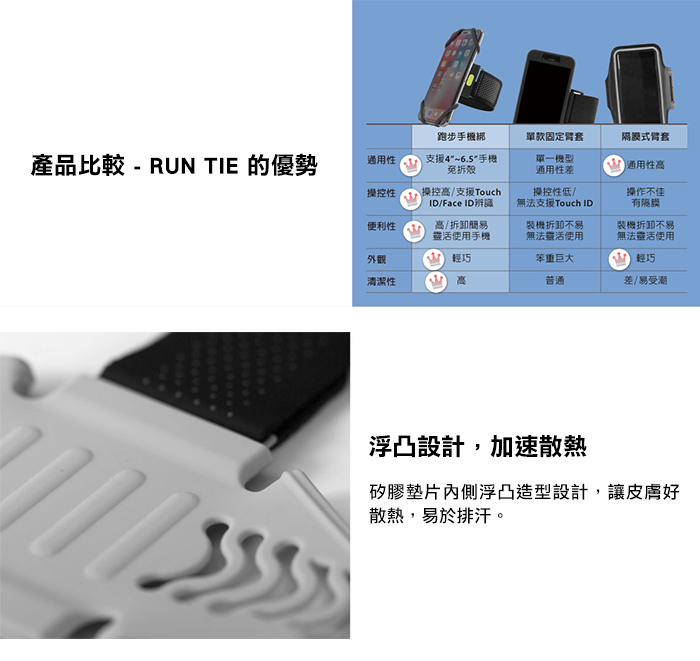 ● 墊片可隔熱,手機發熱也不會燙到手臂