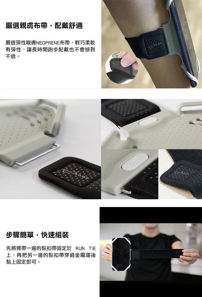 ● 嚴選彈性親膚 Neoprene 布帶,長時間跑步配戴也很舒適