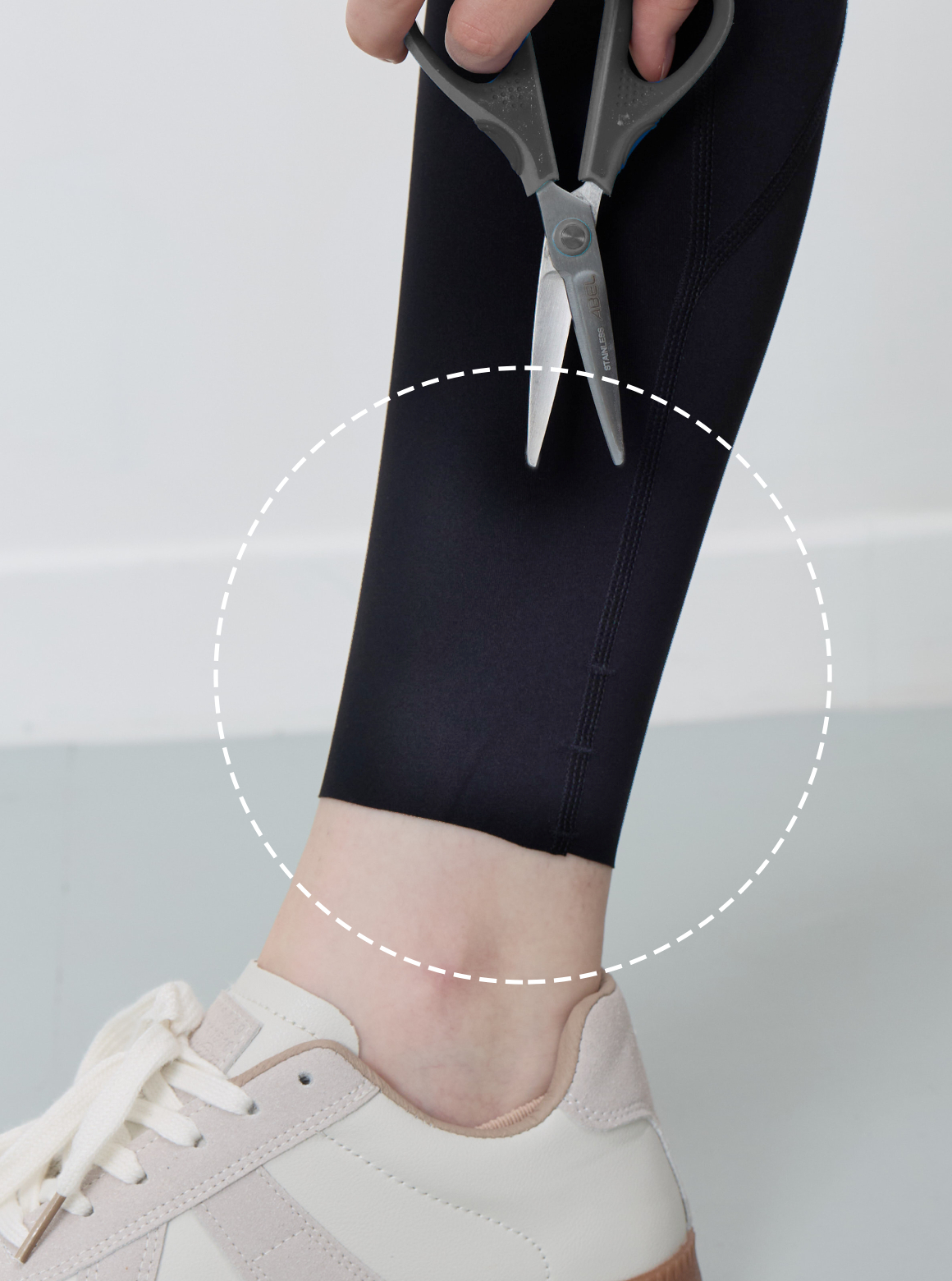褲腳自由裁切設計,採高科技免縫邊