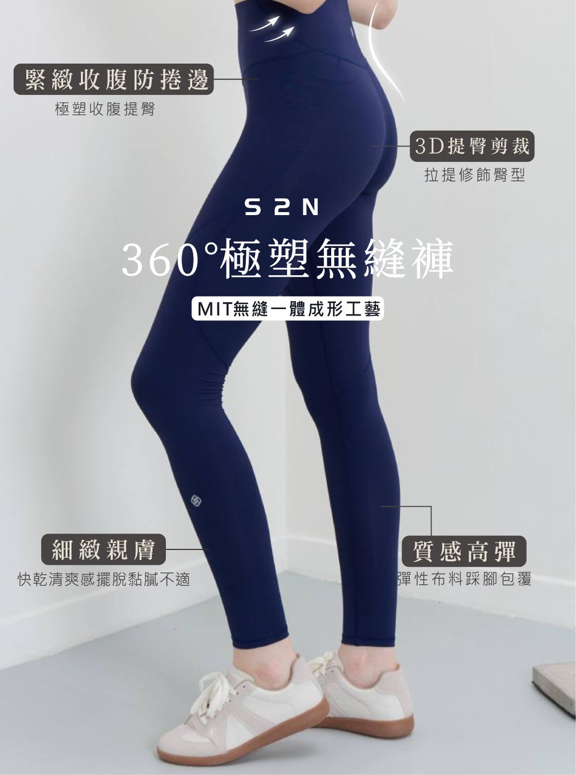 S2N全新雕塑新款360°極塑無縫褲,高彈力親膚面料完美貼合身形,360°無縫高支撐包覆設計,從腰到臀、從腿部到小腿,全方位塑造流暢曲線。特殊立體剪裁提升臀型、收腹同時不壓迫,動態伸展自如。透氣布料搭配高彈力纖維,採零接縫的工藝無多餘縫線,長時間穿著依然舒適自在,動態伸展自由無阻,運動或日常穿搭皆能展現極致曲線美感。