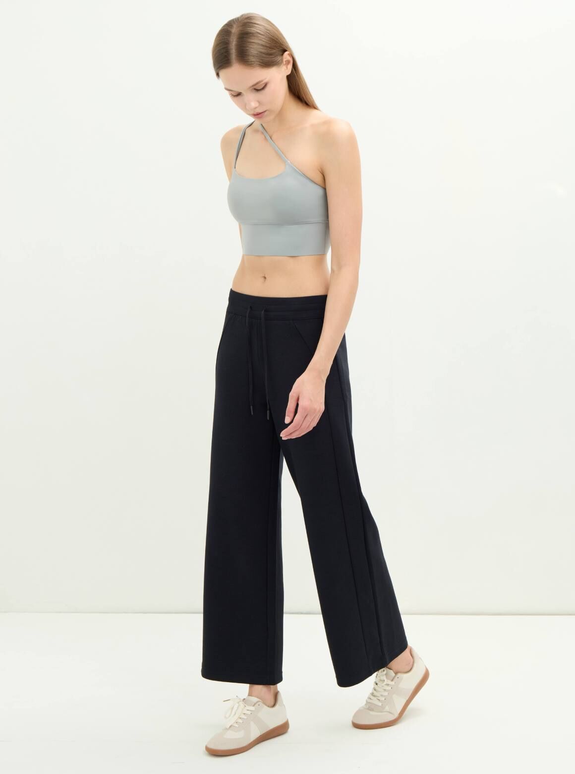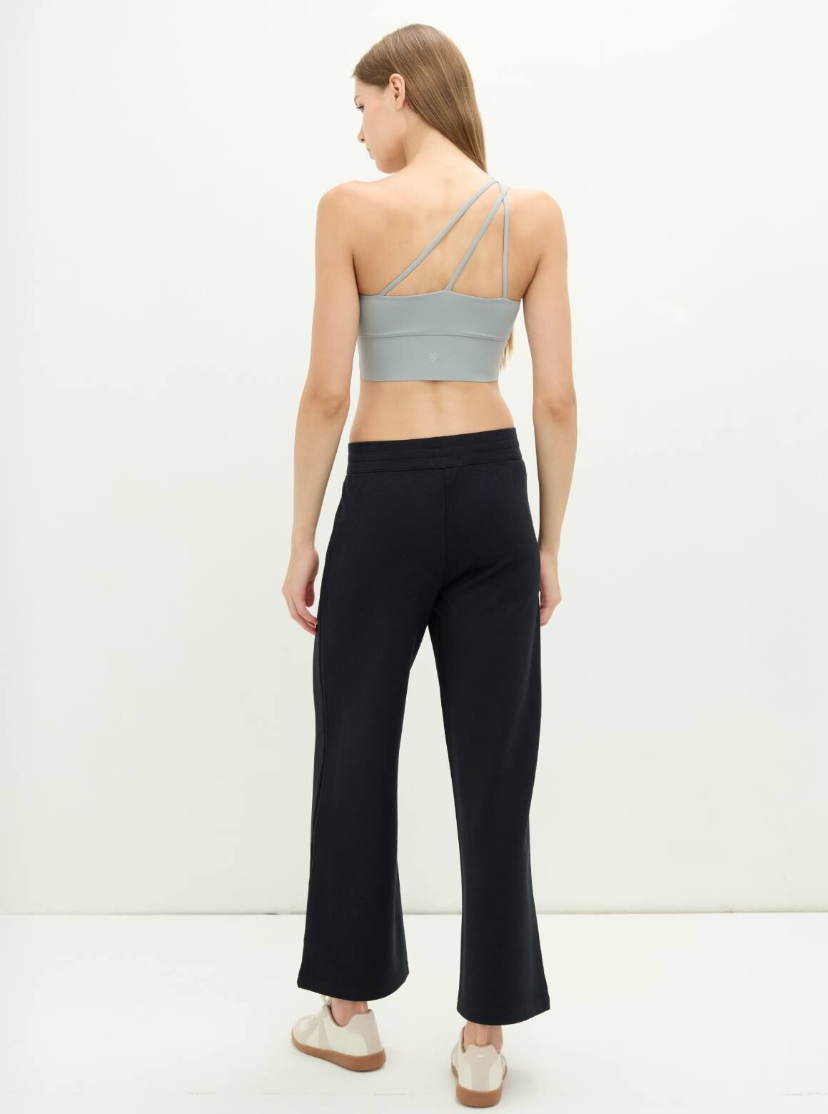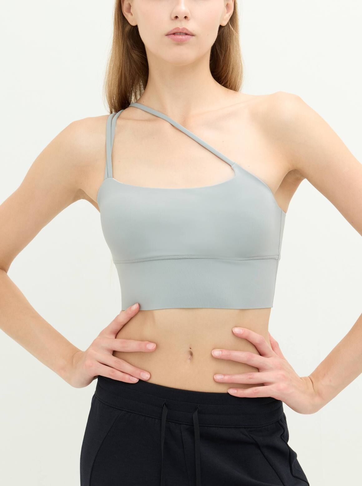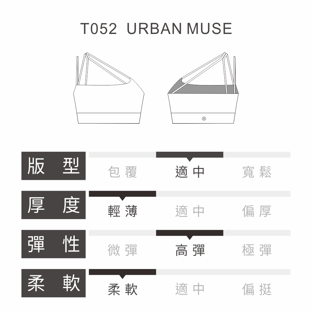 S2N設計款URBAN MUSE隨性細肩短上衣,獨特的斜肩剪裁,前胸交叉細帶設計,不僅強化視覺亮點,更能修飾胸部輪廓,以流動的線條重新定義運動機能。抽離傳統運動內衣的對稱束縛,運用單肩不對稱與細帶交錯的視覺張力,背面採用多層次細肩帶交疊,形成穩定的三角形支撐結構,將運動服飾轉化為具備「時裝感」的設計單品。不僅是練習時的最佳戰友,更是展現鎖骨與肩頸線條的藝術之作。