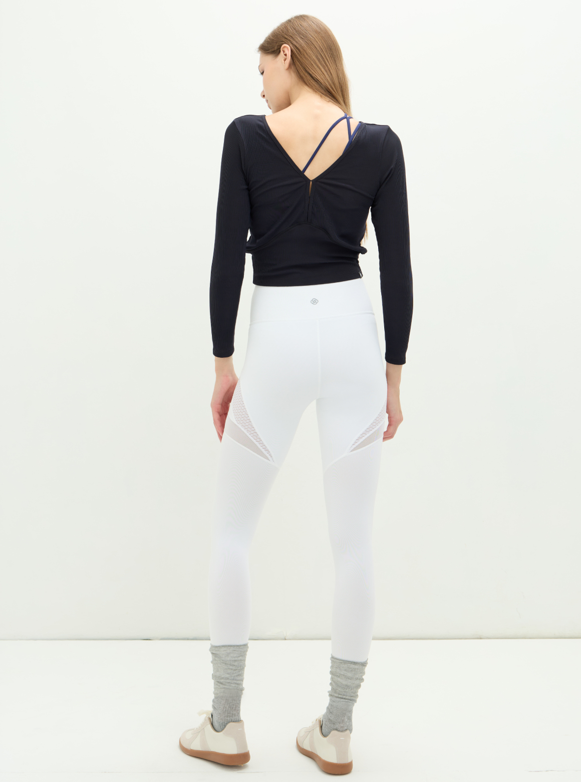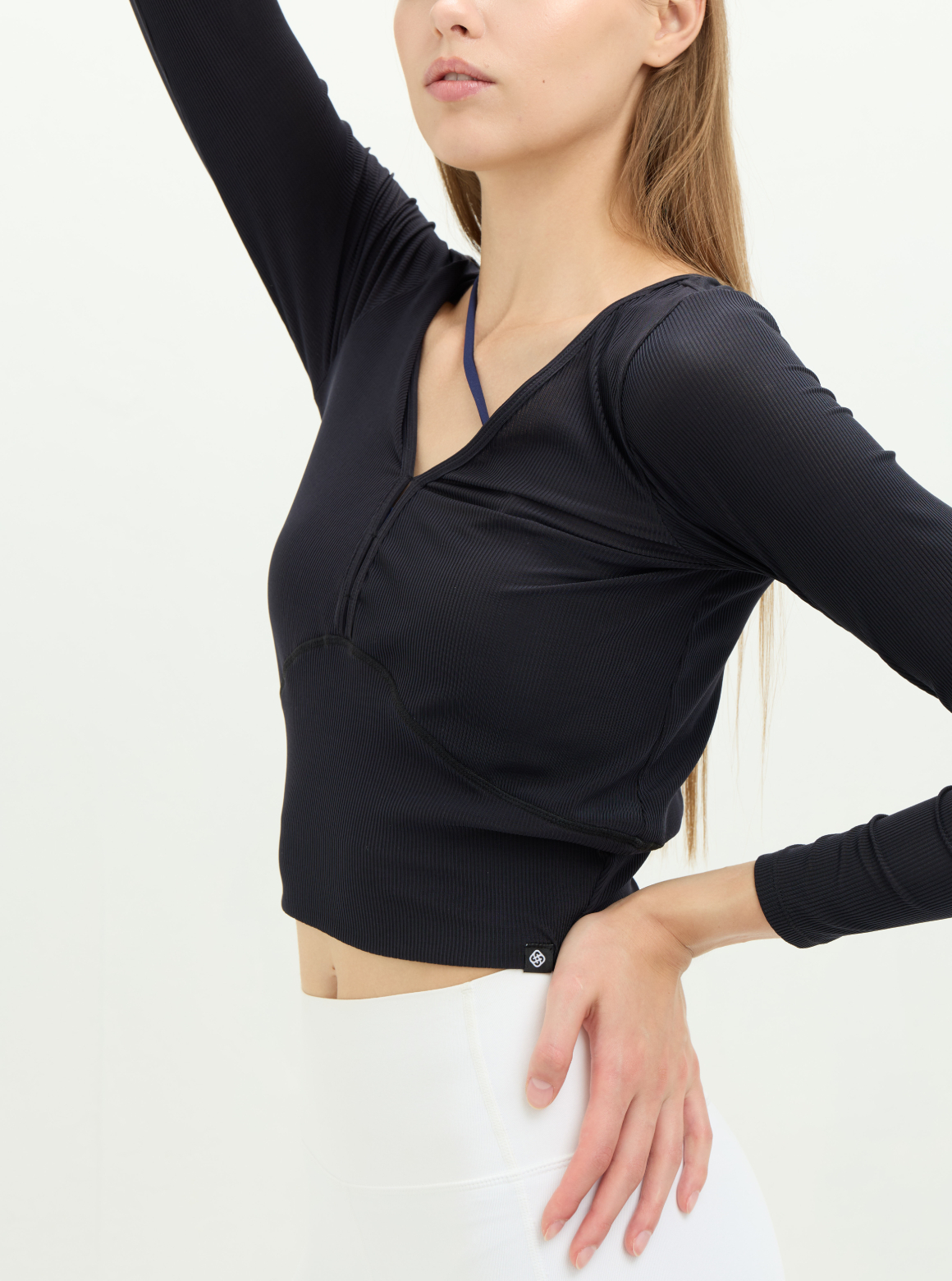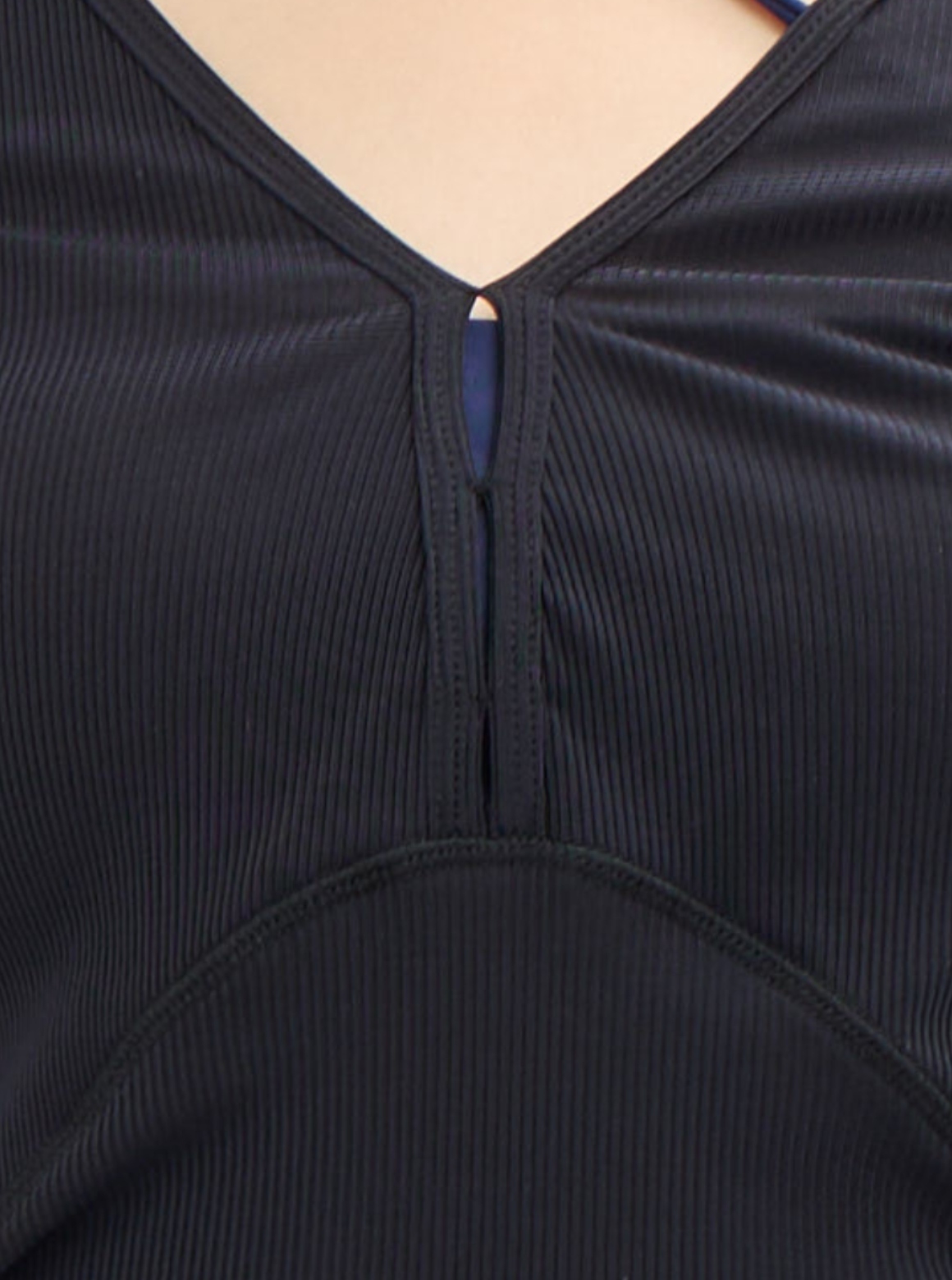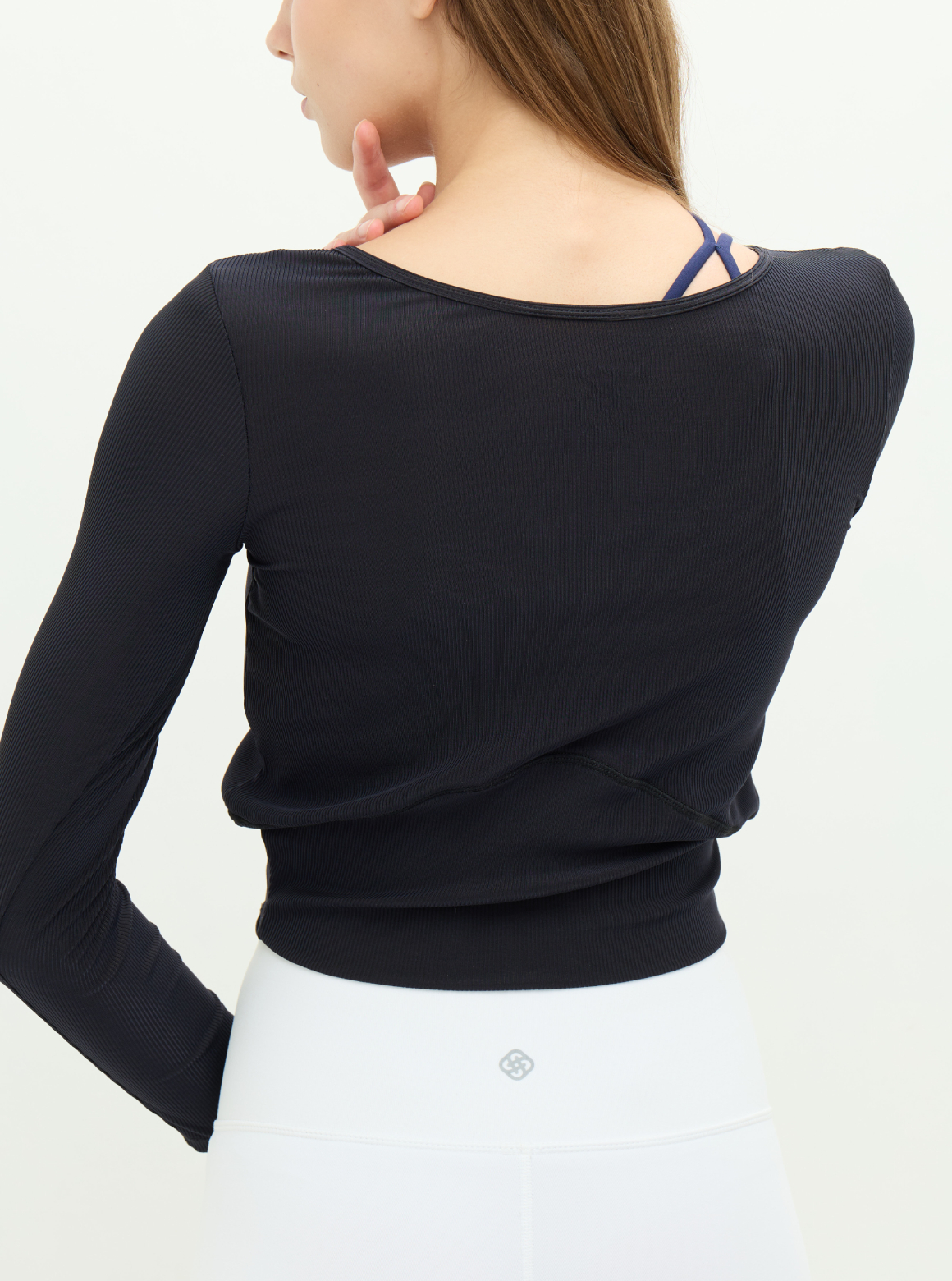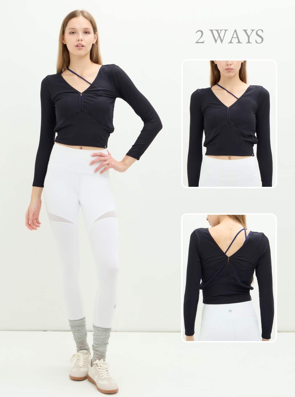 S2N設計系列SLOW LIFE兩穿柔彈羅紋上衣,優雅V領線條 × 柔彈細緻羅紋 × 前後正反造型兩穿採用細緻柔彈羅紋布料製成,親膚貼合且具延展性,提供全天舒適的包覆感。前後皆可穿的設計是這款的亮點:V 領結構搭配細緻鏤空,能自然修飾鎖骨與肩頸線條;反面穿則呈現簡潔圓領樣式,讓一件上衣擁有兩種風格造型。微短版比例剛好落在腰線位置,搭配高腰褲更能拉長身形。從輕運動、瑜珈到日常穿搭皆適用,是兼具機能與時尚的必備百搭款。