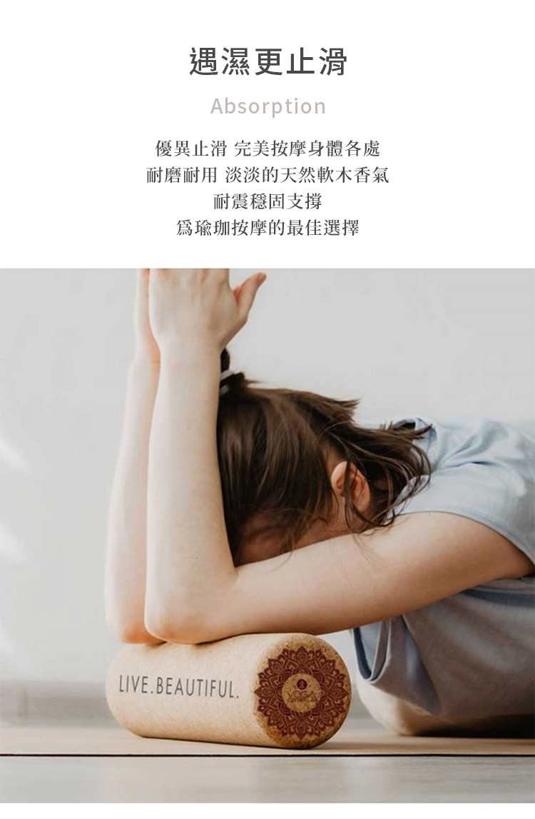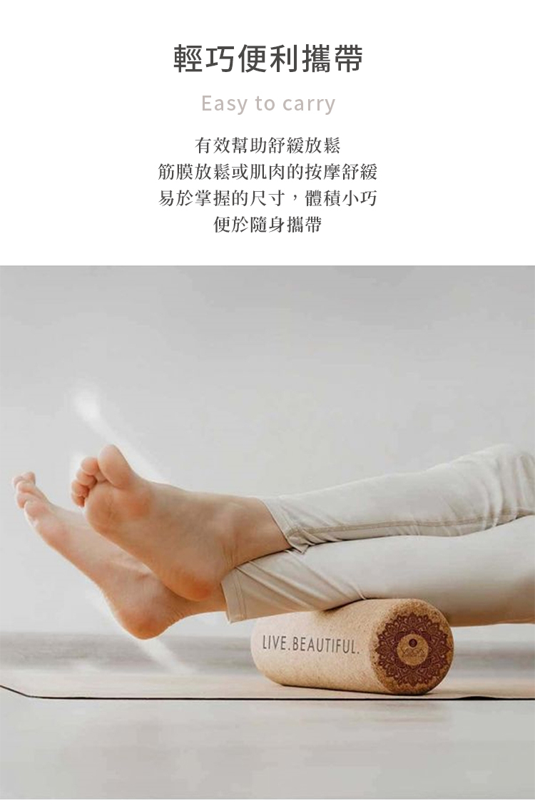 ※軟木瑜珈滾筒表面圖騰採用無毒水墨染印,些許掉色屬正常現象,建議首次及練習後用溼抹布擦拭保養。