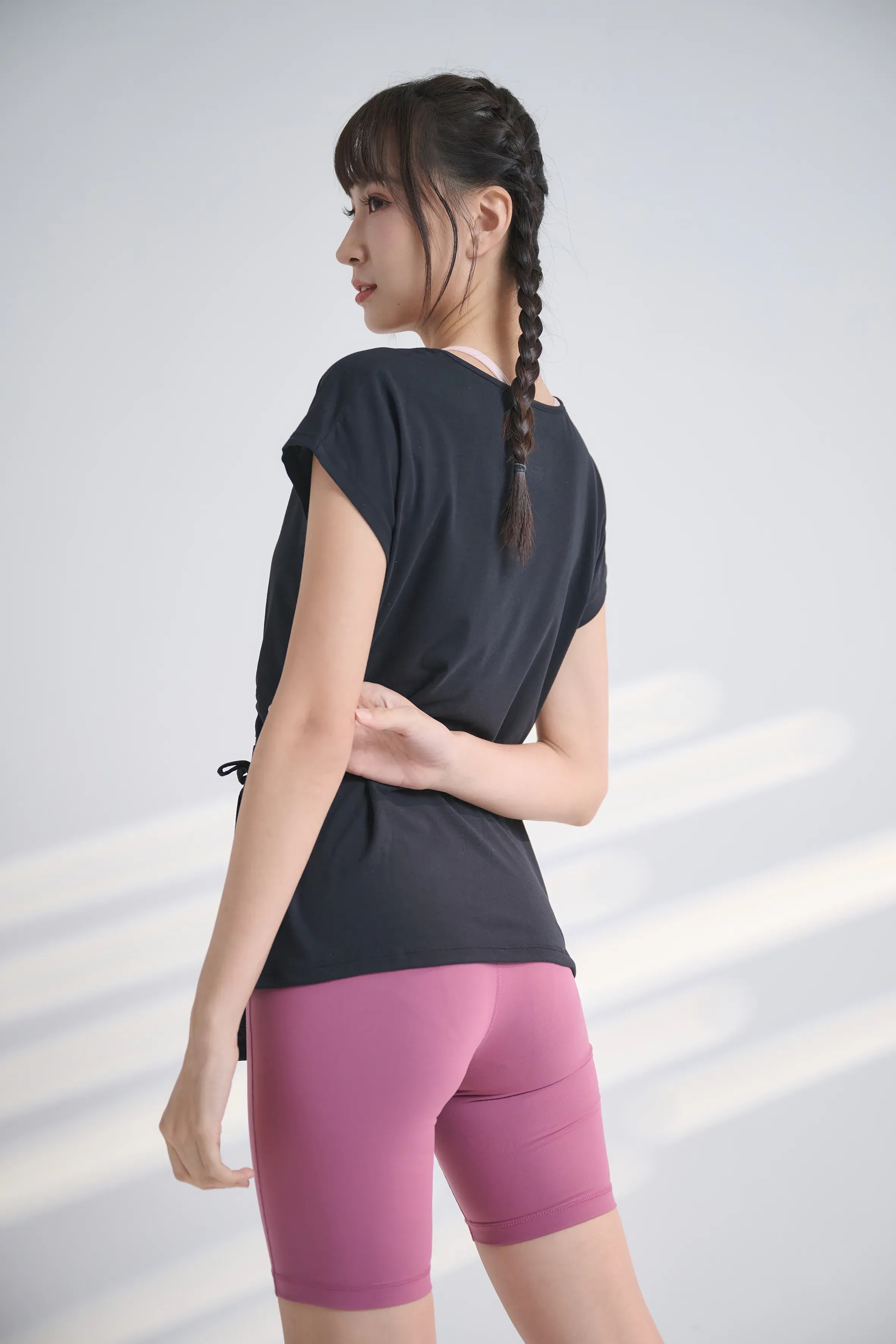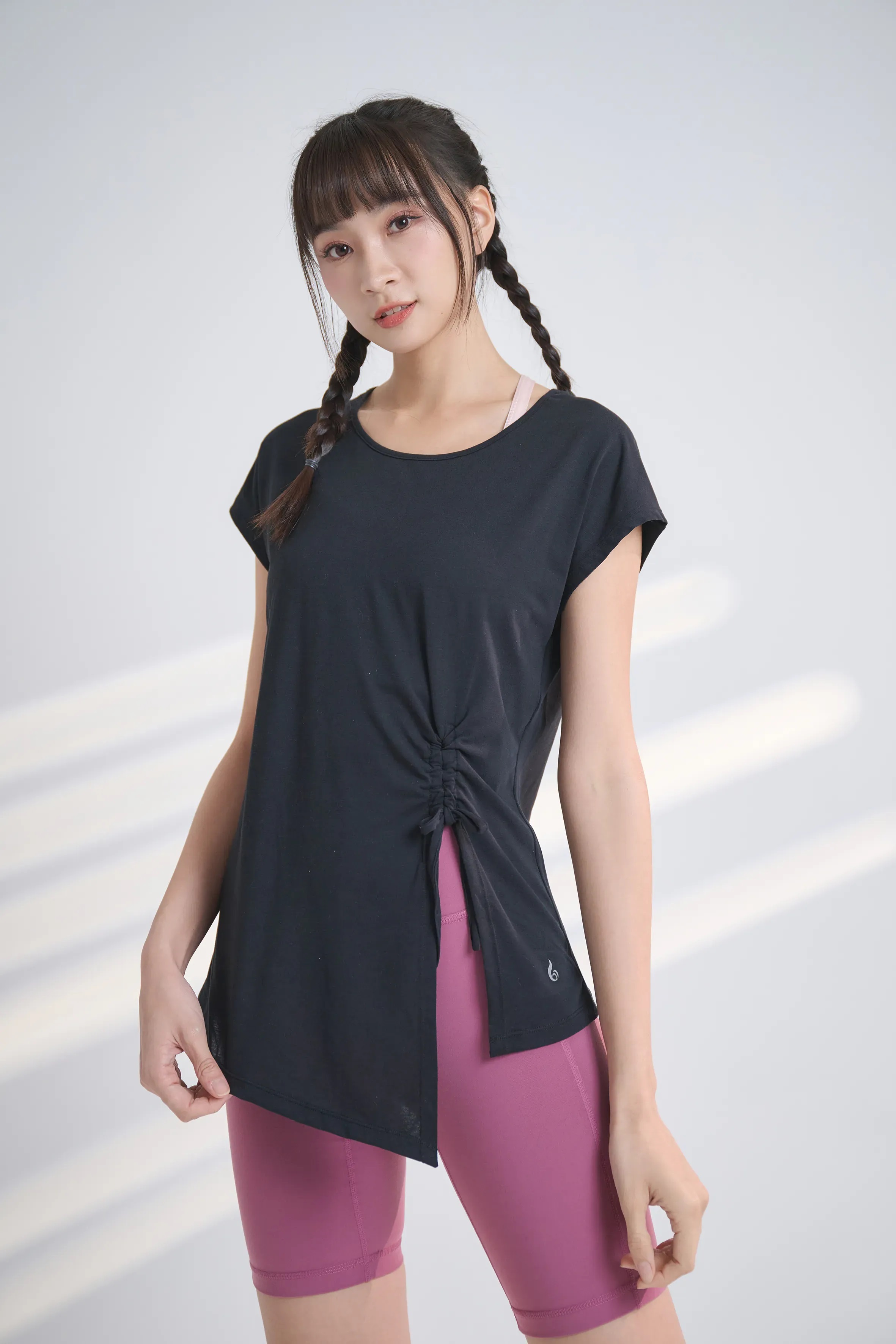 YOGA FLOW Asymmertical Tshirt - 短袖圓領側邊抽繩罩衫 - 烏漆黑