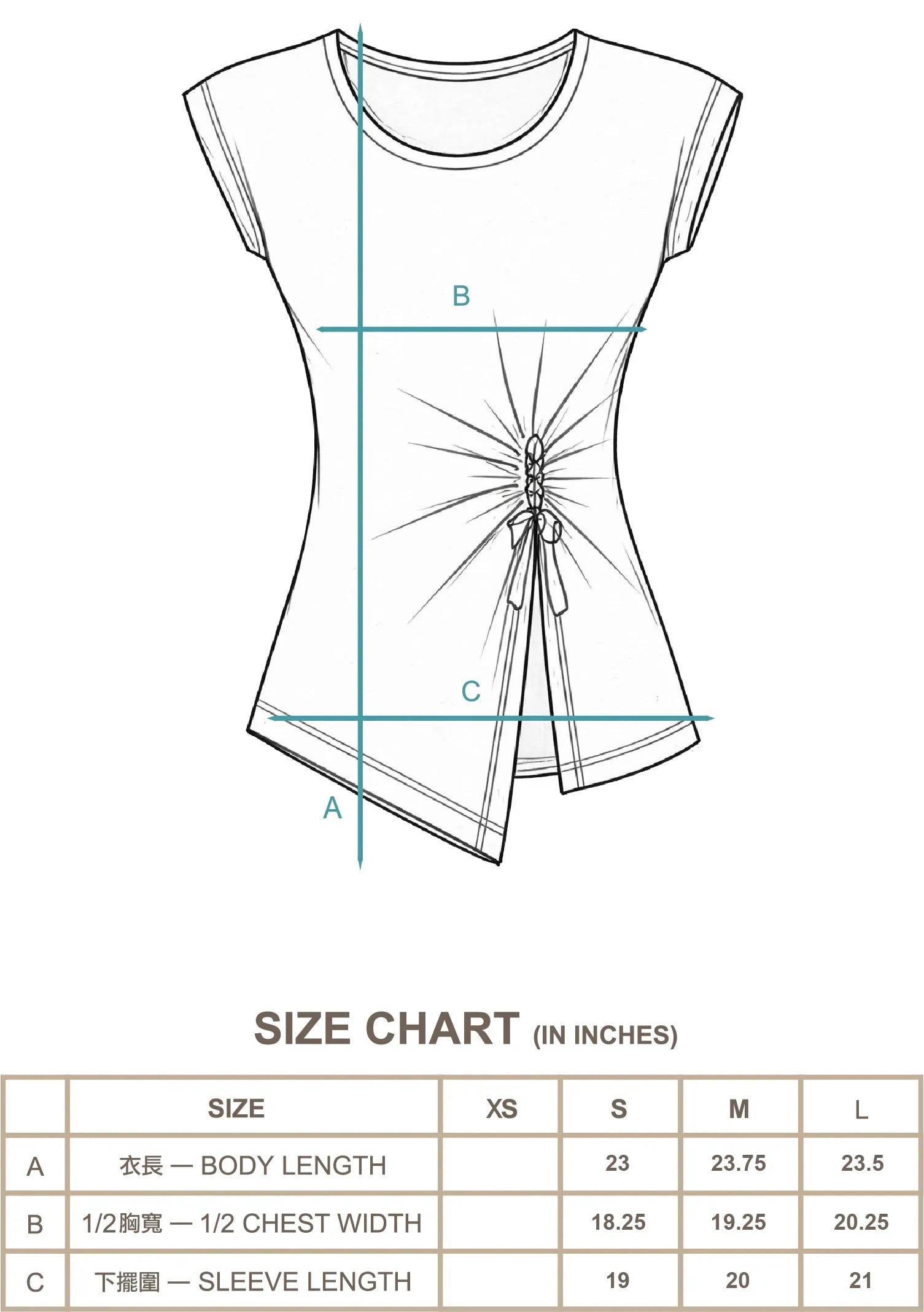2 . 側邊抽繩自由調整長度,皺褶線條自然修飾身形比例。