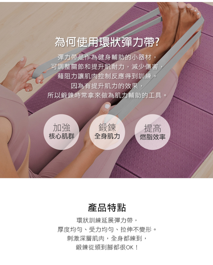商品出貨內容:加長款環狀訓練延展彈力帶1入