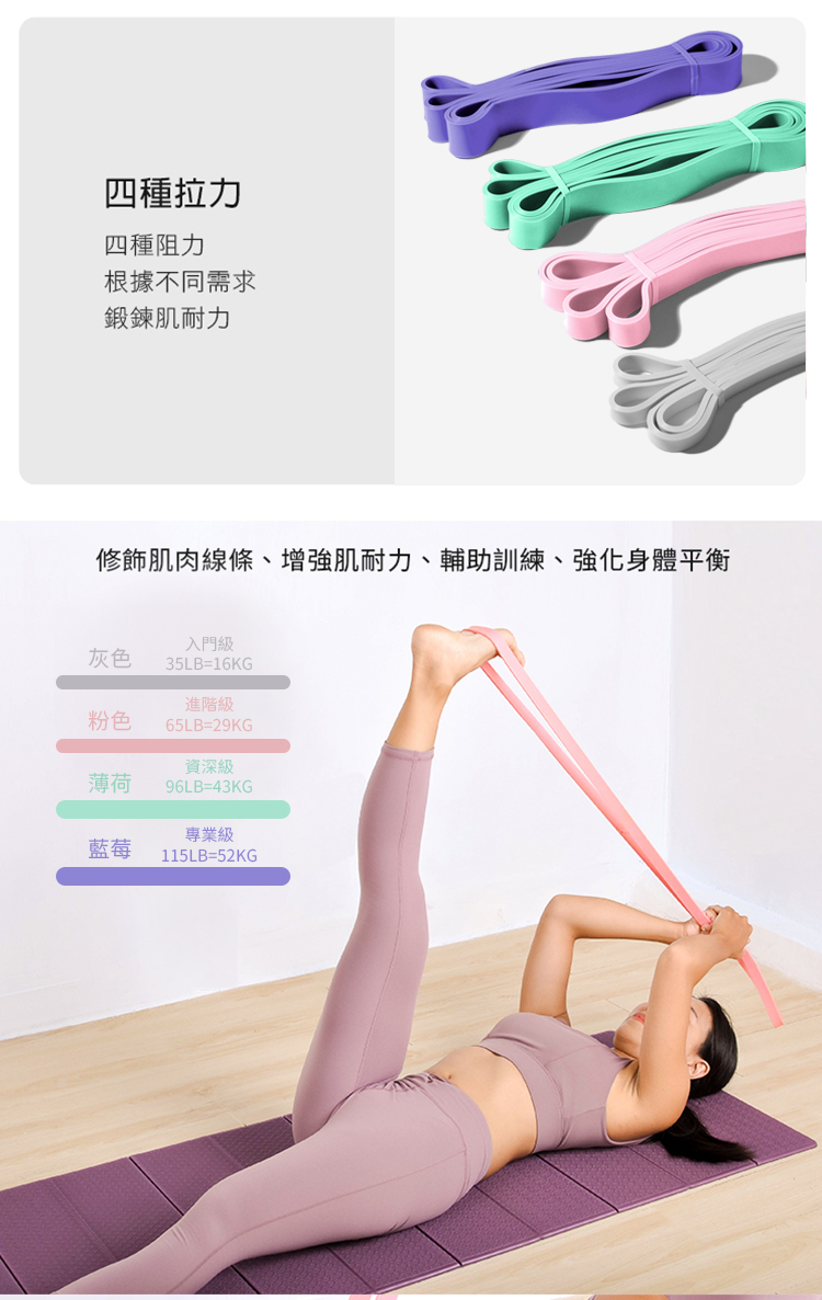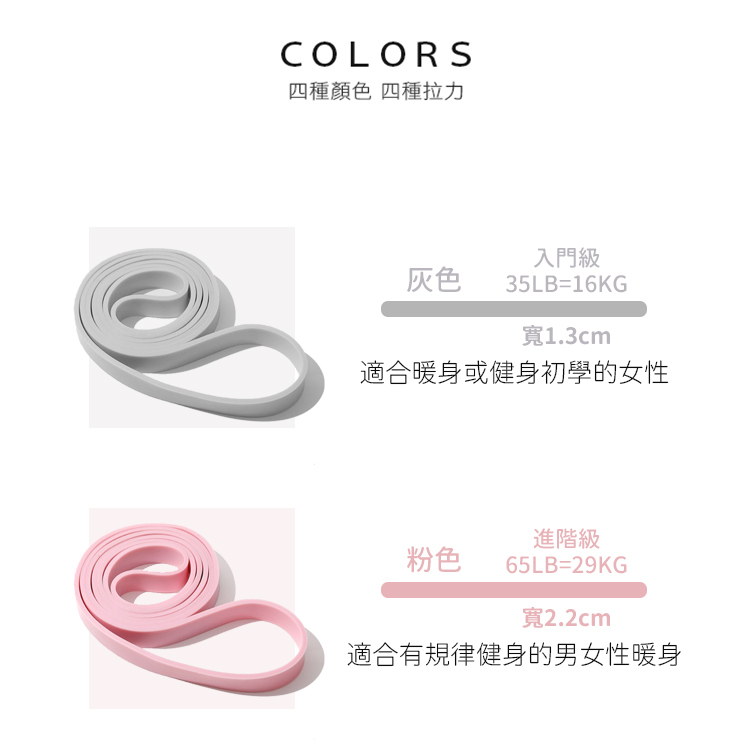 拉力:灰色35LB/粉色65LB/綠色96LB/藍色115LB